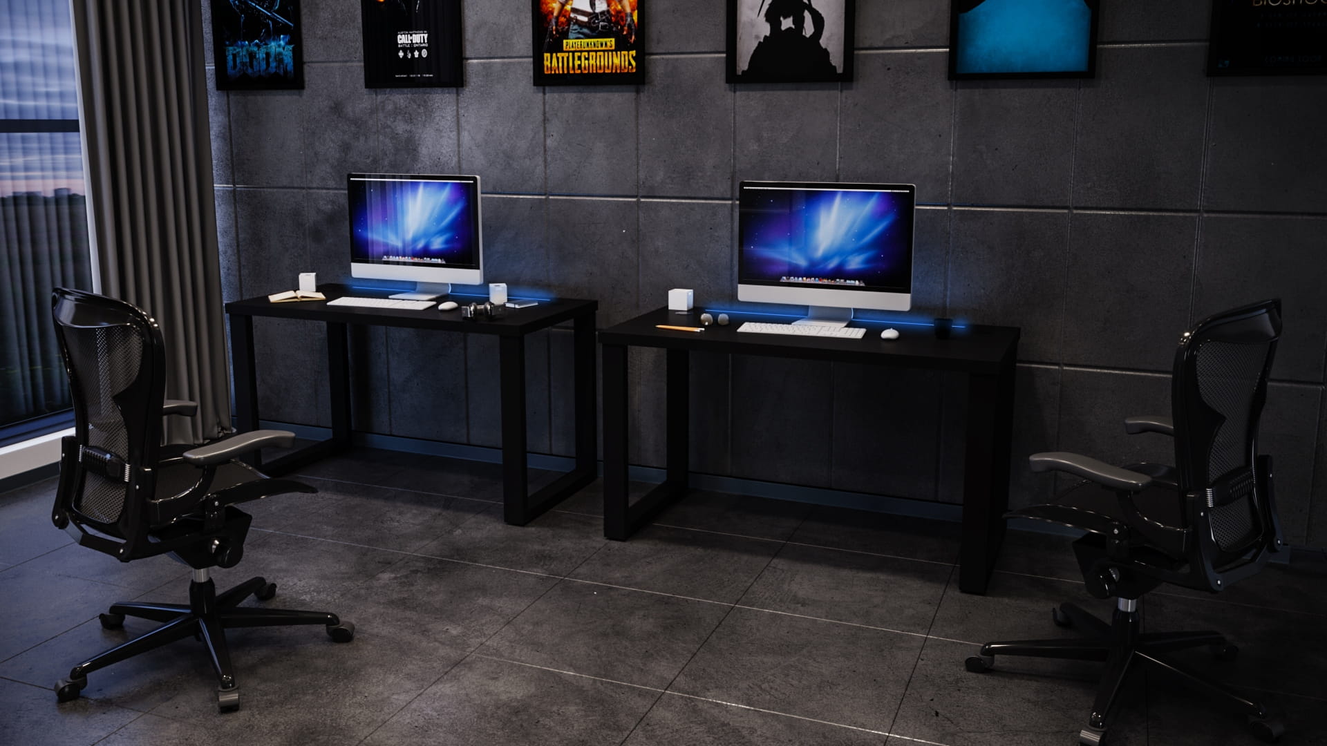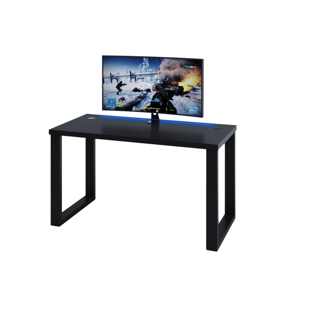 Biurko gamingowe z zintegrowaną taśmą LED umieszczoną w estetycznych profilach aluminiowych tworzy niepowtarzalny klimat. Pilot zdalnego sterowania pozwala wybrać spośród 16 kolorów oraz trybów światła. Takie biurko komputerowe idealnie wpasuje się w nowoczesne wnętrze lub pokój dla gracza.