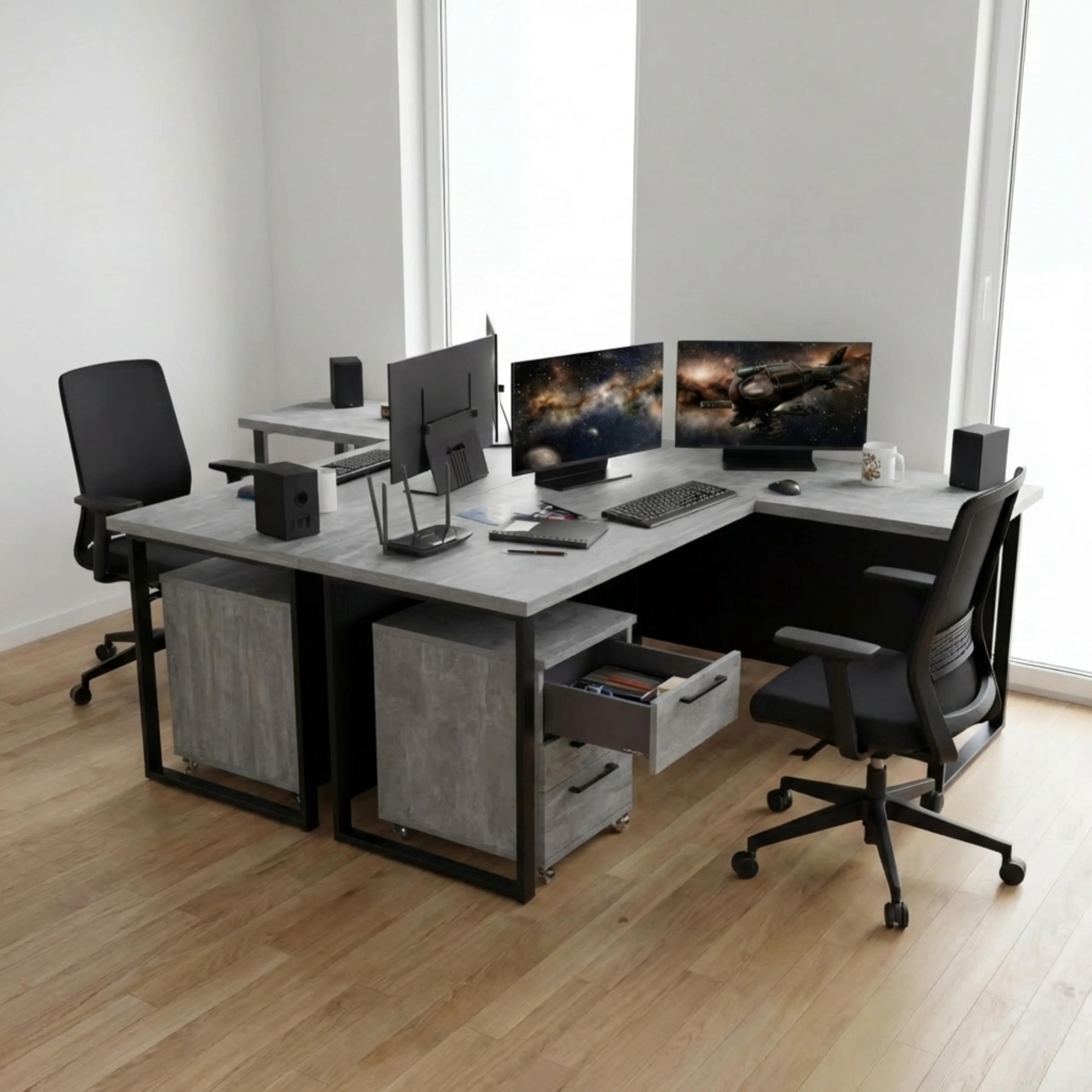 Biurko Gamingowe Dla Gracza Narożne Duże Blenda Beton Jasny VINI