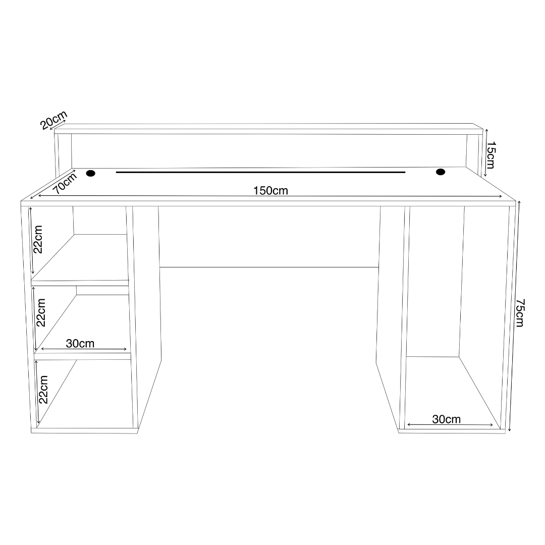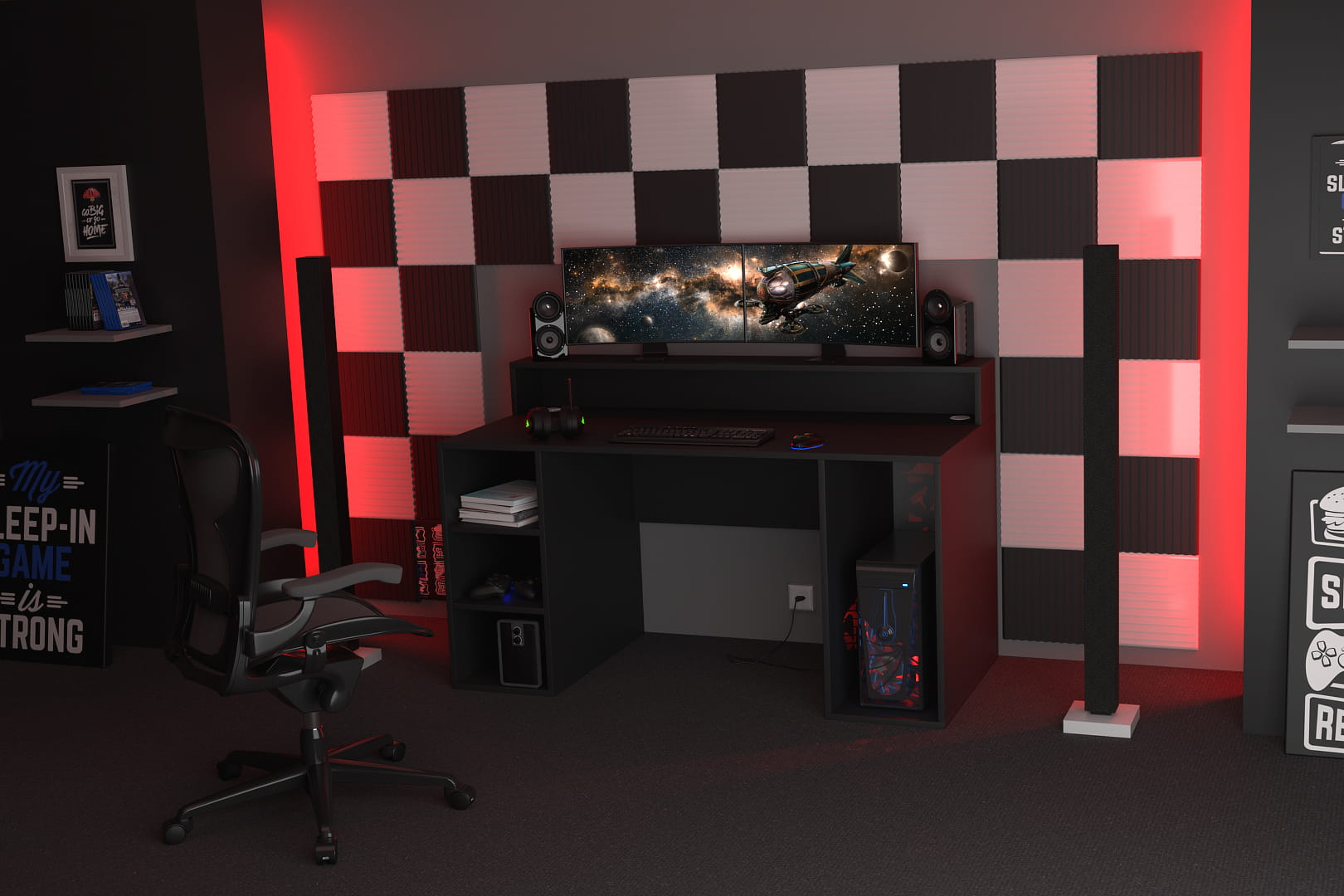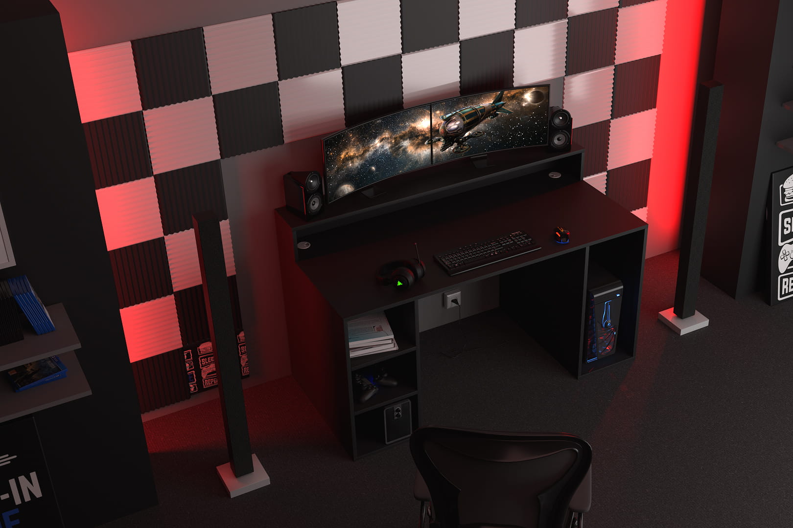 Biurko gamingowe Enigma to doskonały wybór dla graczy i profesjonalistów, którzy oczekują solidności, funkcjonalności i nowoczesnego wyglądu. Stabilna konstrukcja oraz gruba płyta 1.8 cm, wyraźnie przewyższająca cienkie płyty 1.6 cm stosowane przez konkurencję, zapewniają długowieczność i odporność na intensywne użytkowanie. Praktyczna podstawka pod monitor poprawia komfort i czyni z Enigmy pełnoprawne biurko ergonomiczne. Dodatkowo wydzielone miejsce na komputer pozwala utrzymać porządek, co doceni każdy użytkownik biurka komputerowego.