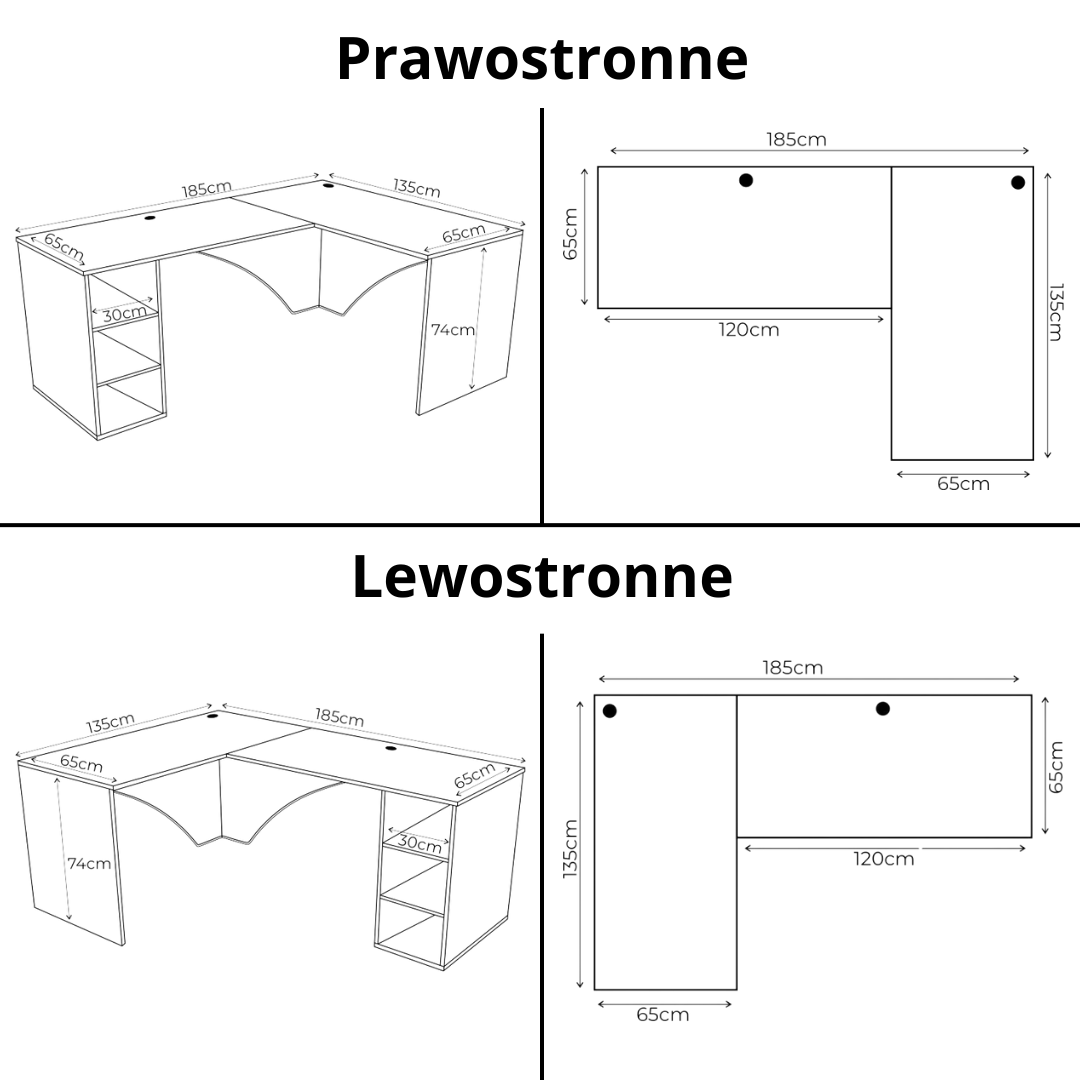 Wybierz konfigurację biurka narożnego, która będzie najlepiej odpowiadać Twoim potrzebom – możesz postawić na lewostronną lub prawostronną wersję w zależności od przestrzeni i preferencji.