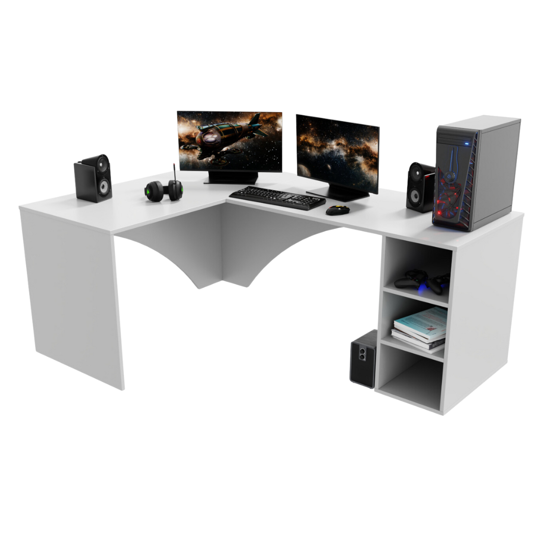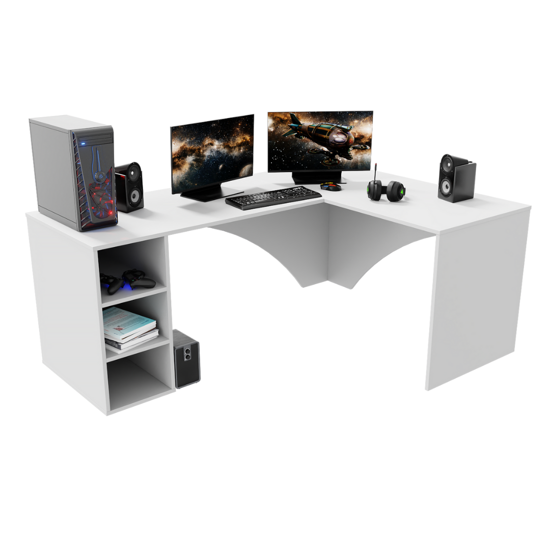Biurko Gamingowe Komputerowe Narożne Podwójne Białe Carbon