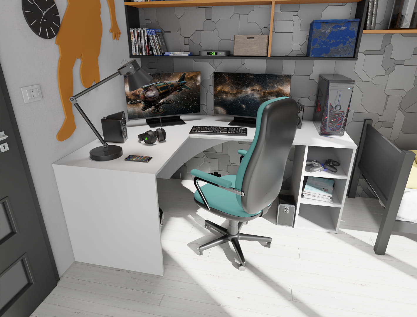 Praktyczne półki – Wbudowane półki zwiększają funkcjonalność biurka komputerowego, oferując dodatkowe miejsce na akcesoria, dokumenty lub sprzęt, co pozwala lepiej zorganizować przestrzeń roboczą.