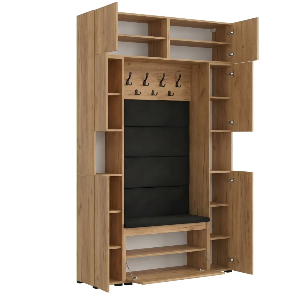 Garderoba Szafka Do Przedpokoju Na Buty z Siedziskiem Słupek Panele Tapicerowane Wieszak Złoty Craft Zestaw Nadstawka Podwójny