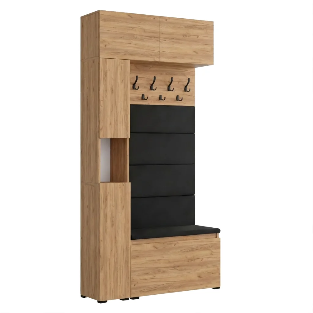 Garderoba Szafka Do Przedpokoju Na Buty z Siedziskiem Słupek Panele Tapicerowane Wieszak Złoty Craft Zestaw Nadstawka