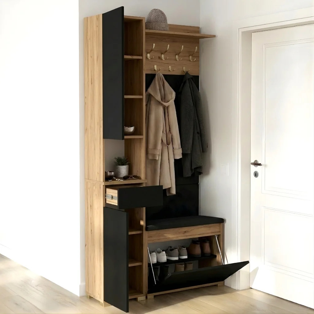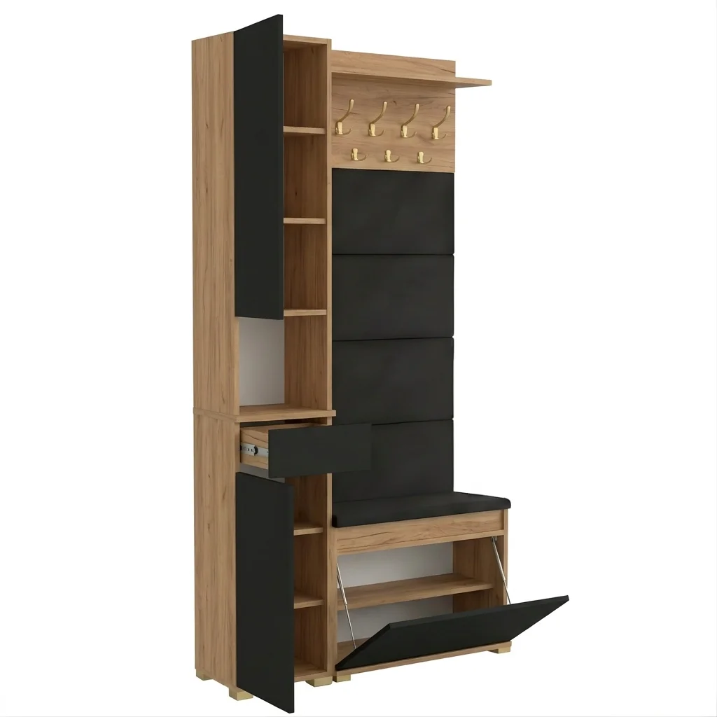 ✅ Szafka obustronna – Uniwersalna szafka może być ustawiona w dowolnym miejscu przedpokoju dzięki jej obustronnej konstrukcji. Niezależnie od aranżacji, będzie pasować do Twojej garderoby.