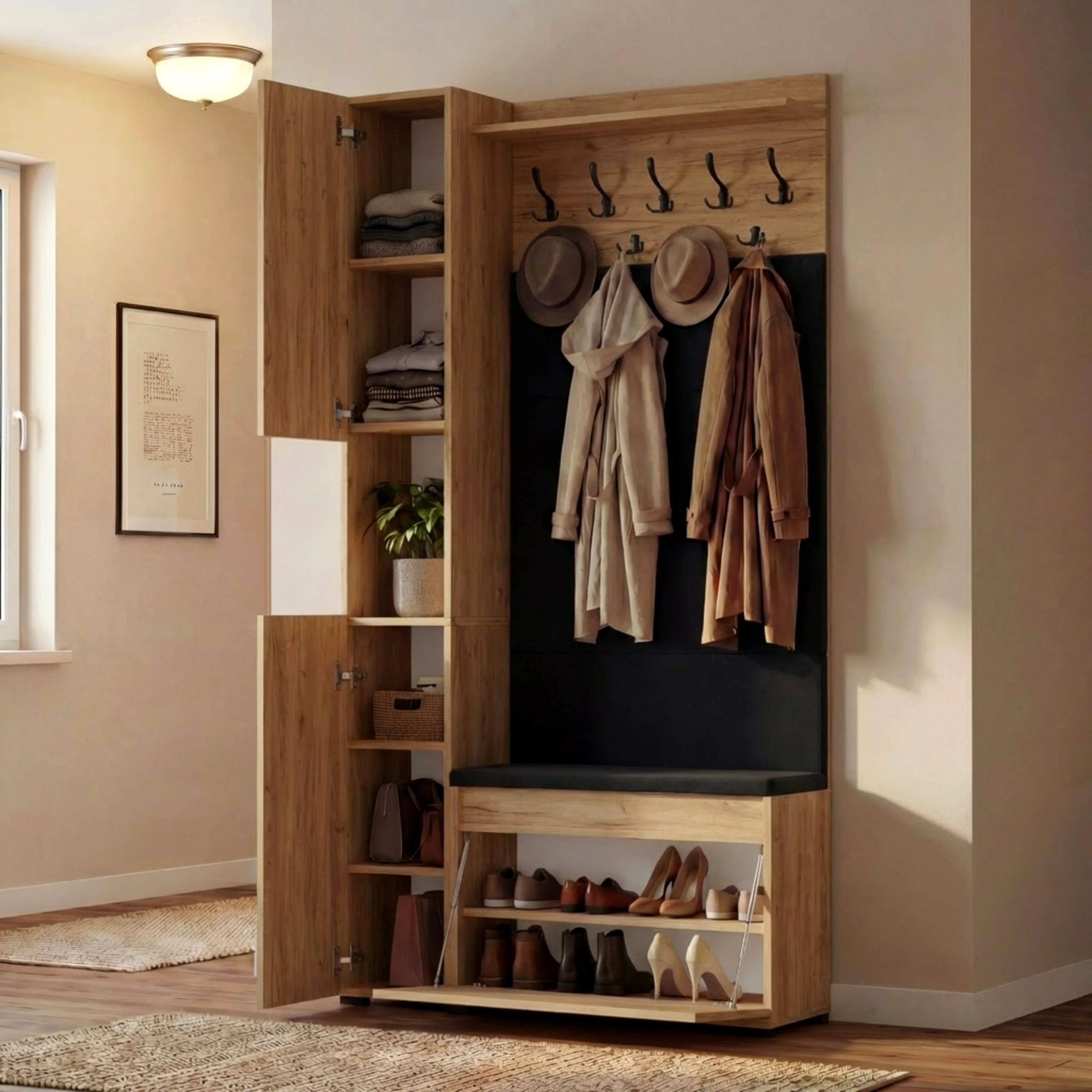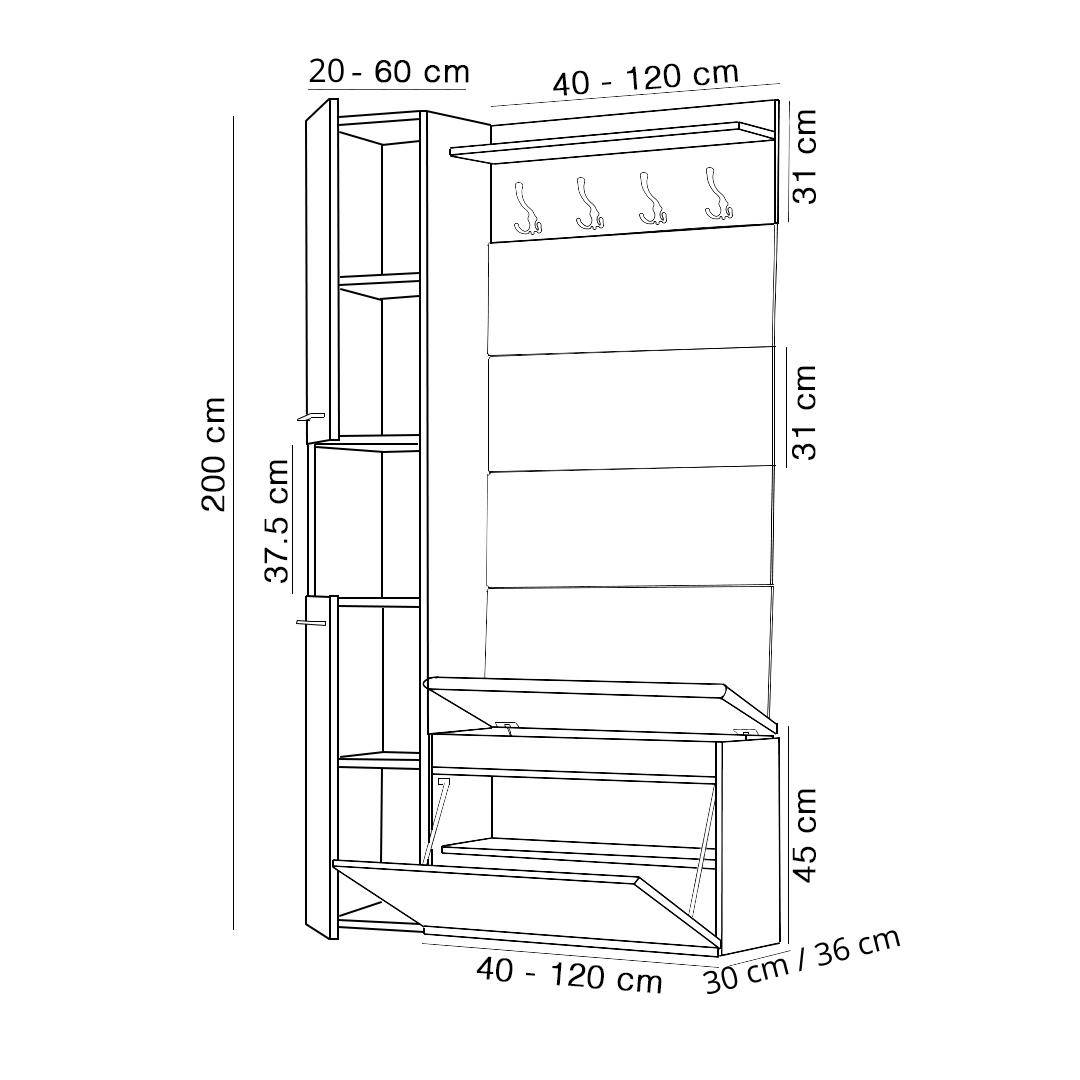 ✅ Wąski słupek – Ten kompaktowy słupek to idealne rozwiązanie do przechowywania butów i innych przedmiotów w ograniczonej przestrzeni. Jego smukła forma nie zajmuje dużo miejsca, ale oferuje funkcjonalne przechowywanie dla całej rodziny.