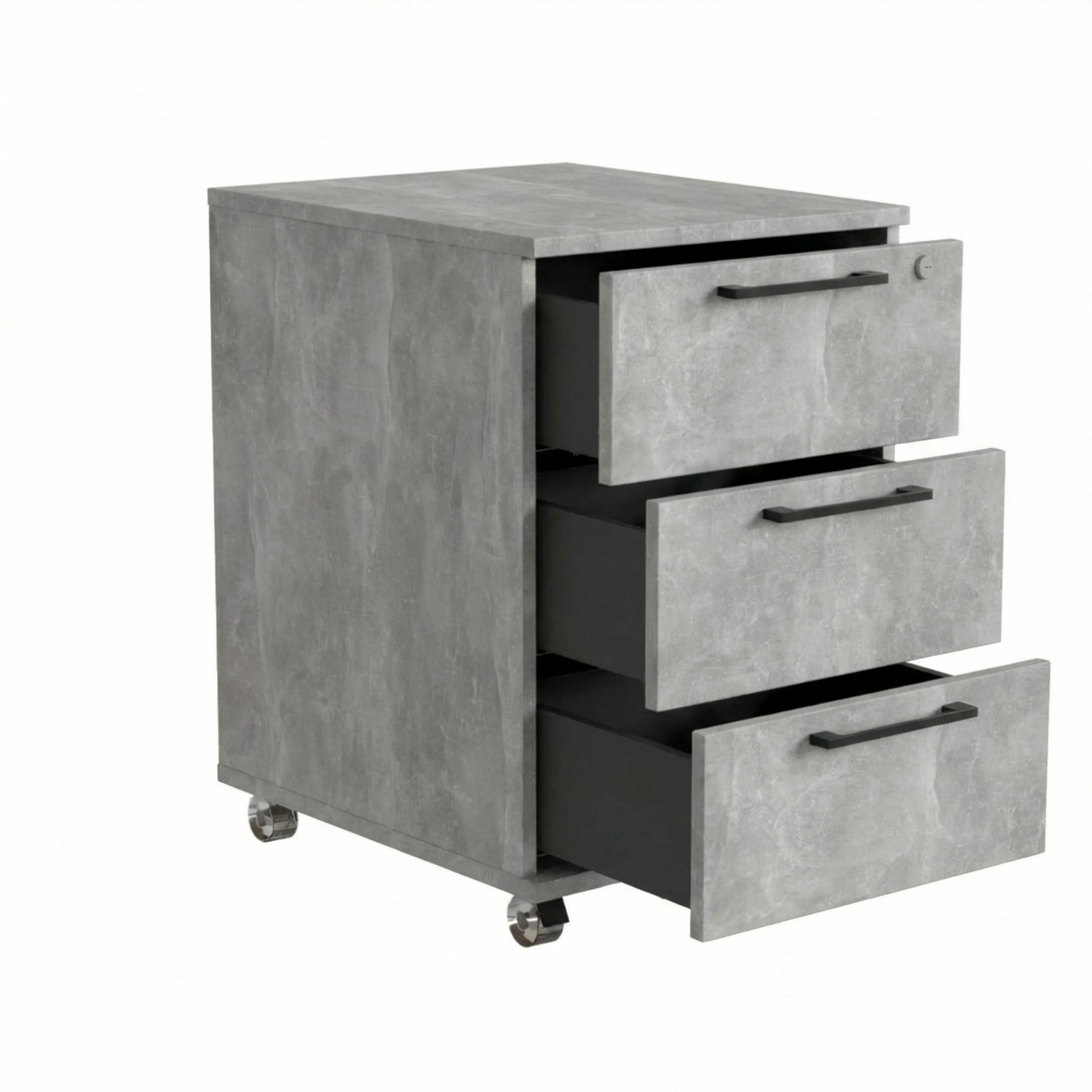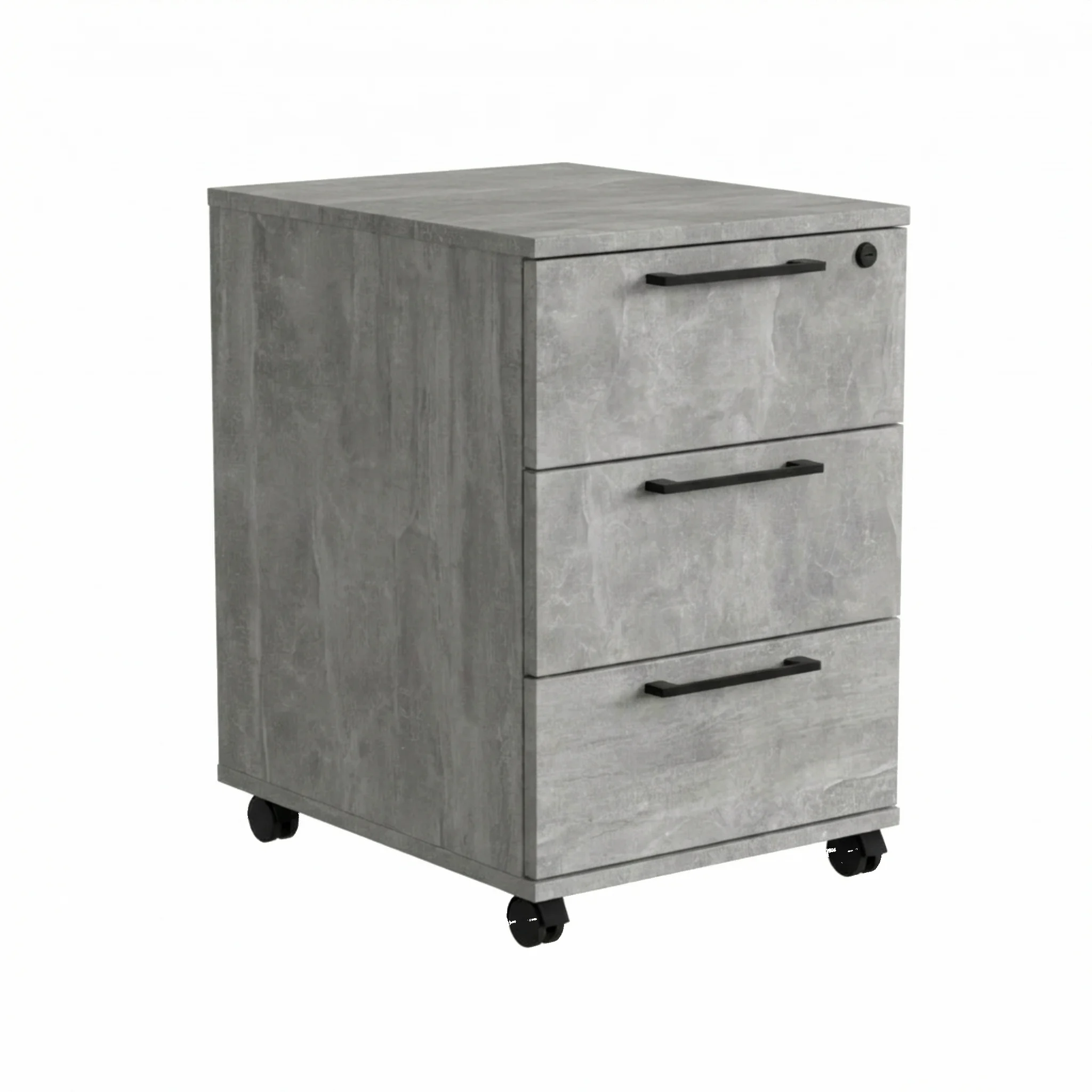 Kontenerek Pod biurko Na Kółkach Zamykany z 3 Szufladami Beton Jasny Max