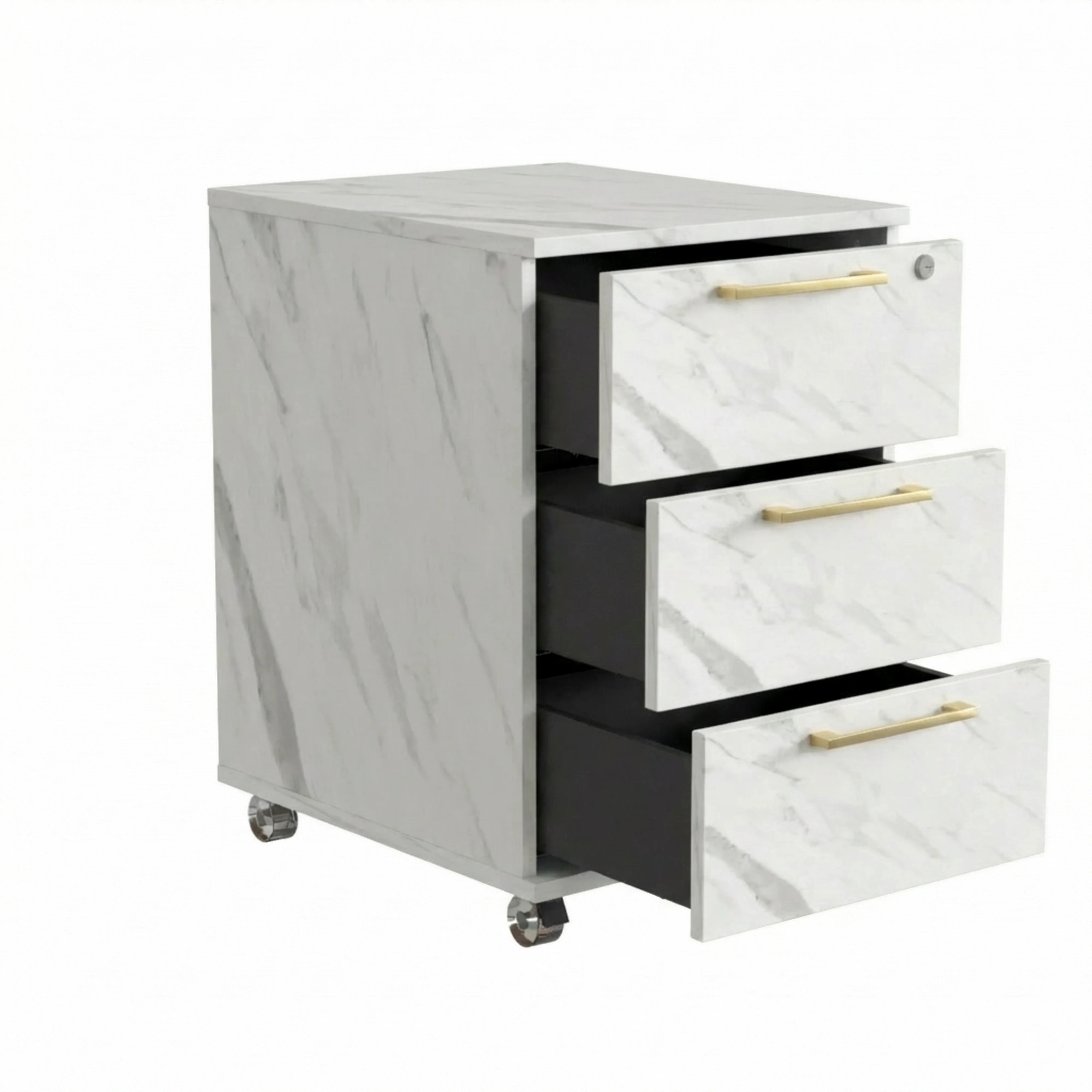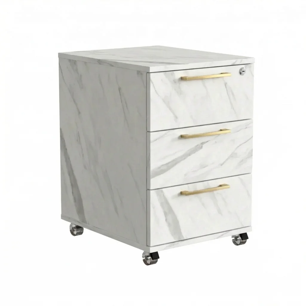 Kontenerek Pod biurko Na Kółkach Zamykany z 3 Szufladami Biały Marmur Max