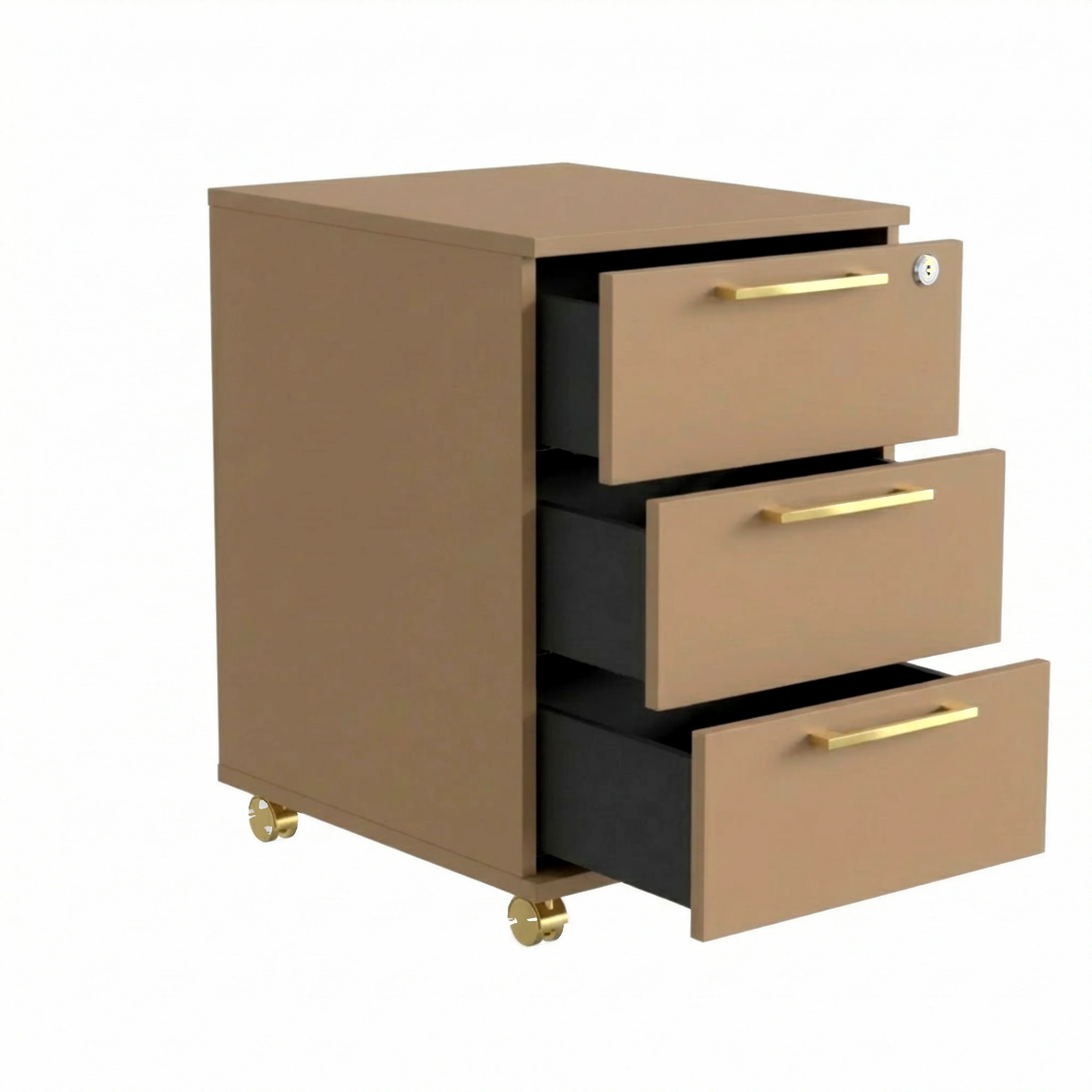 Kontenerek Pod biurko Na Kółkach Zamykany z 3 Szufladami Cappuccino Max