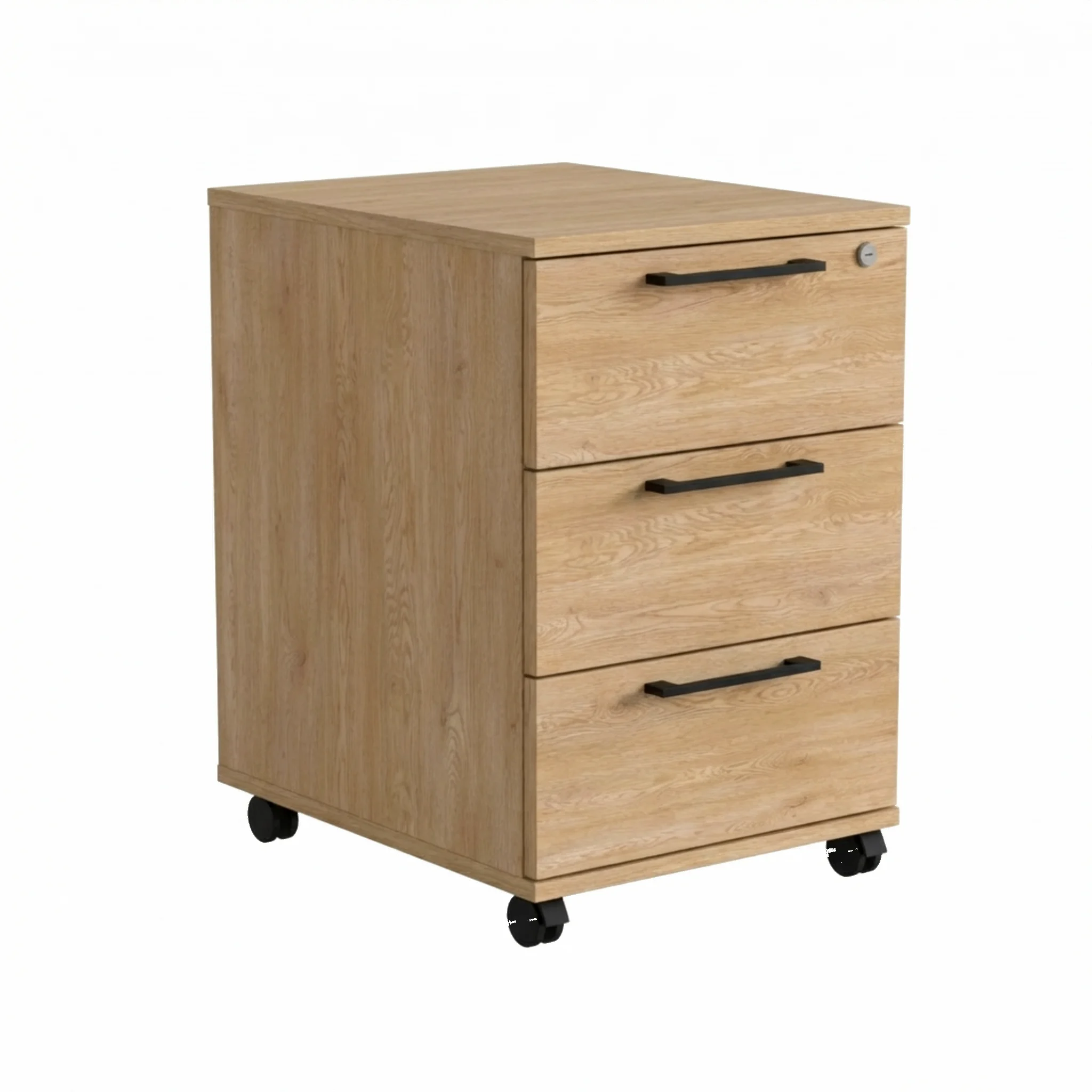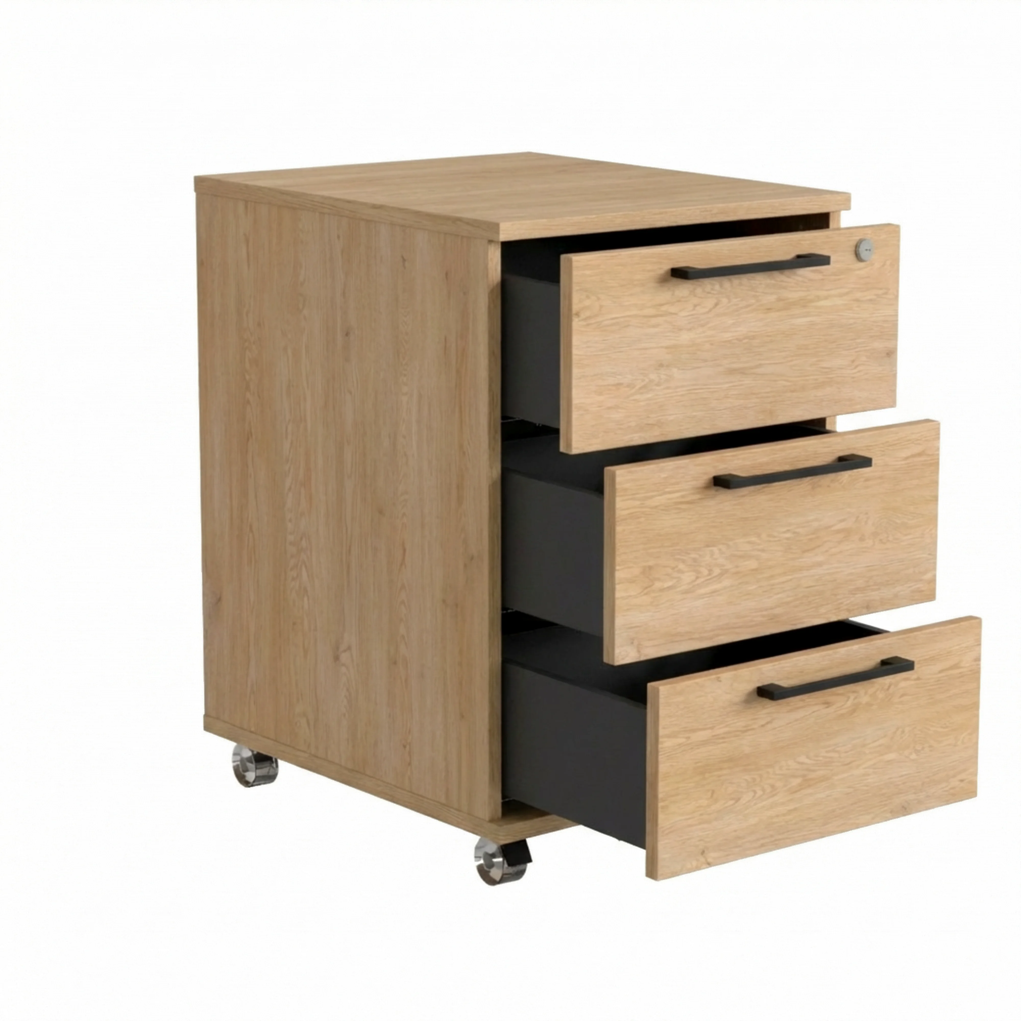 Kontenerek Pod biurko Na Kółkach Zamykany z 3 Szufladami Dąb Cremona Max