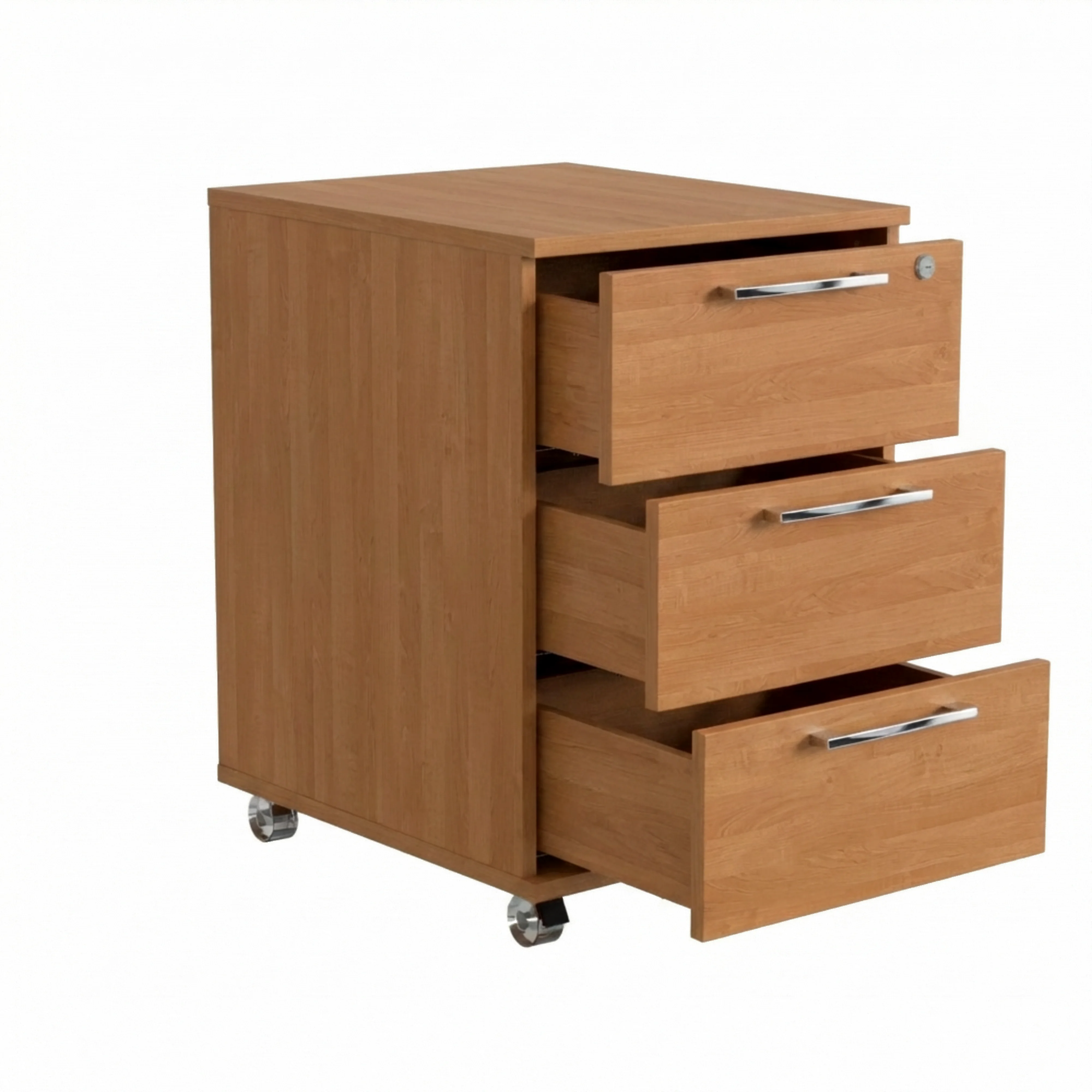 Kontenerek Pod biurko Na Kółkach Zamykany z 3 Szufladami Olcha Max