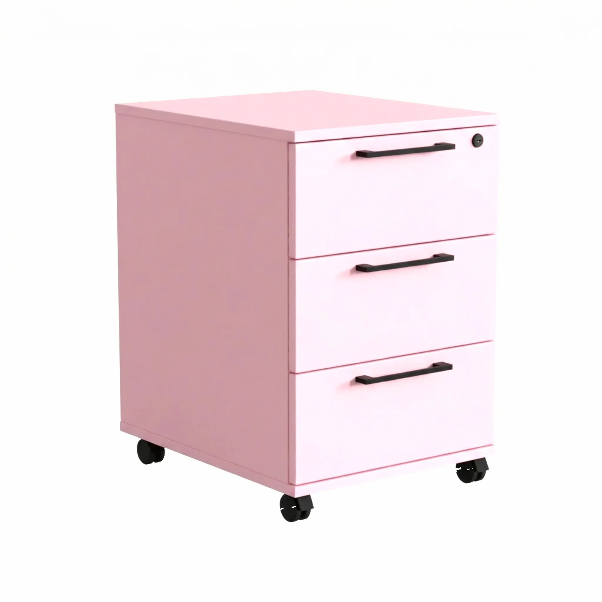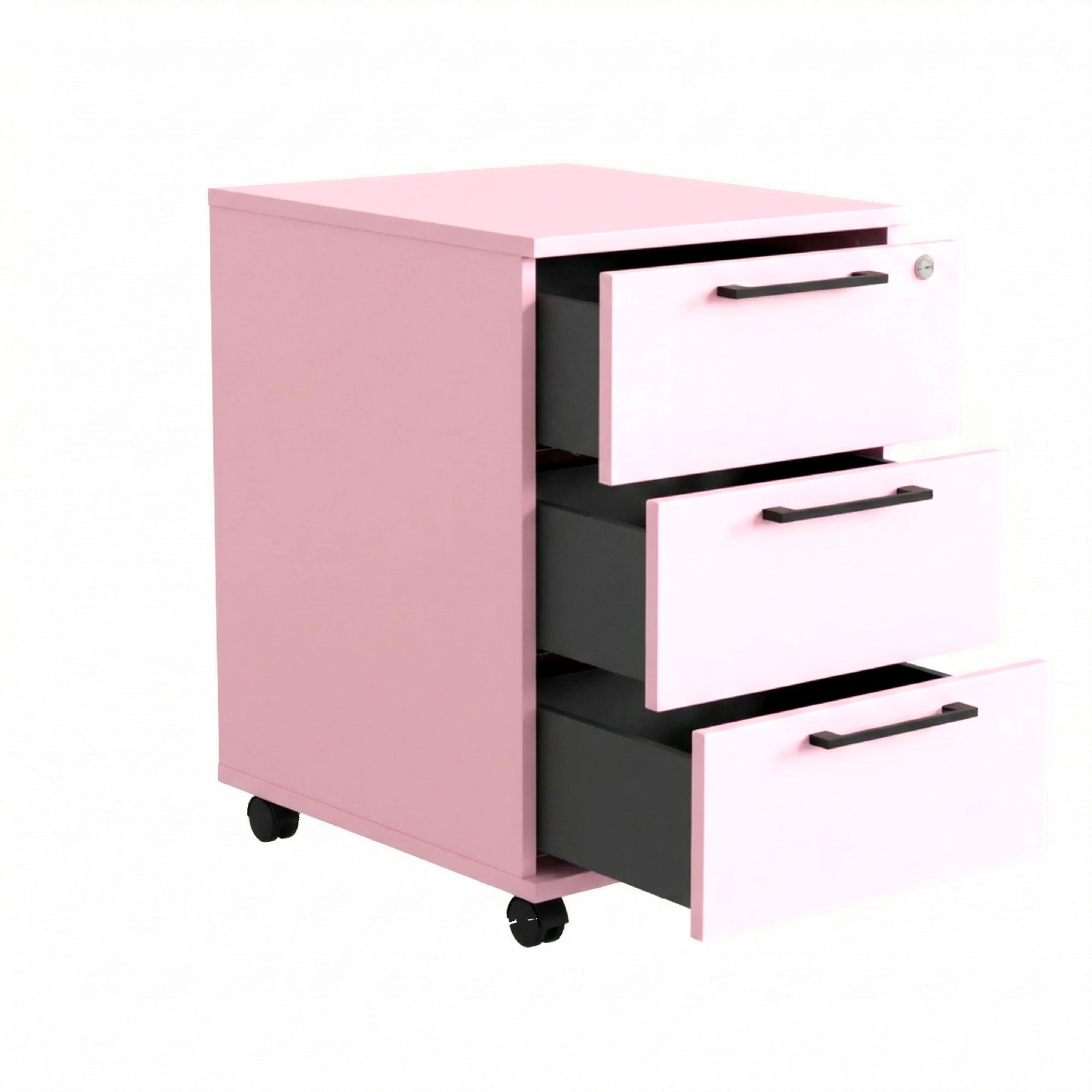 Kontenerek Pod biurko Na Kółkach Zamykany z 3 Szufladami Różowy Max