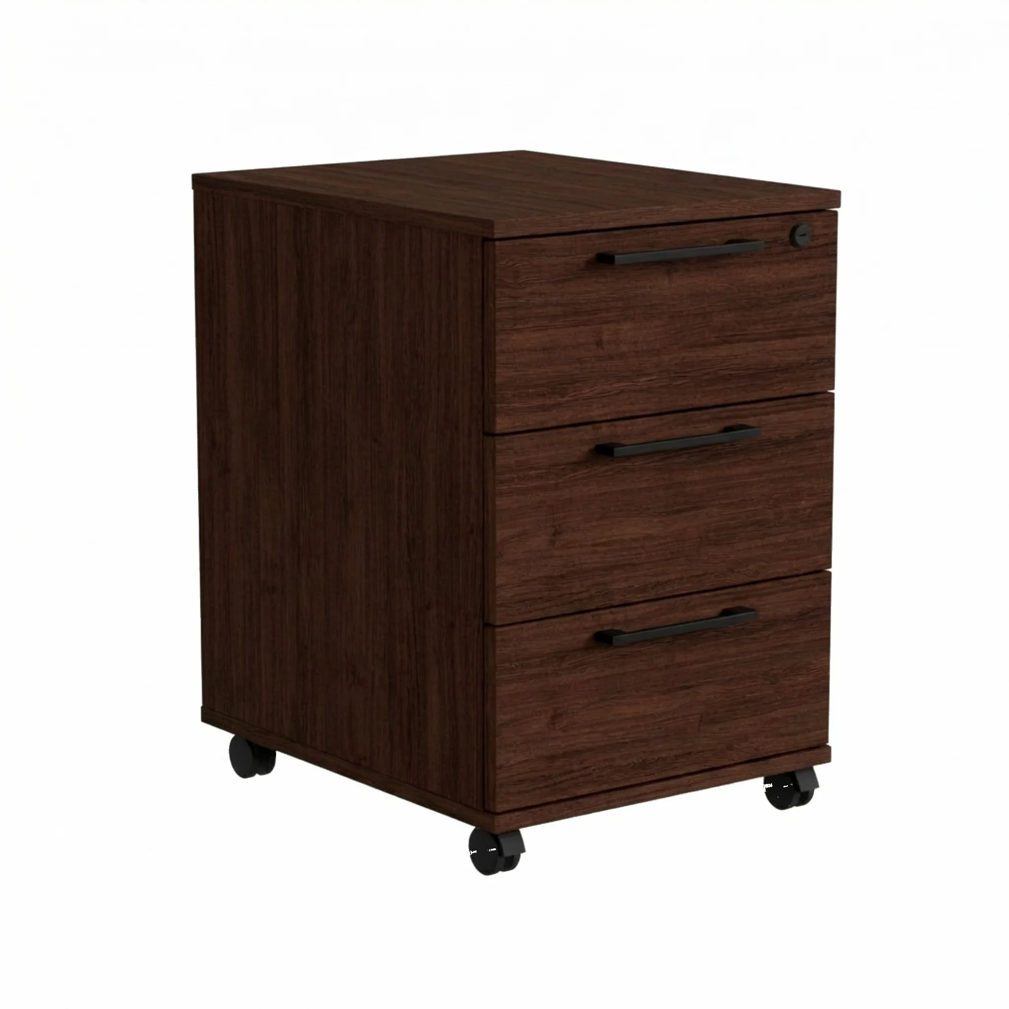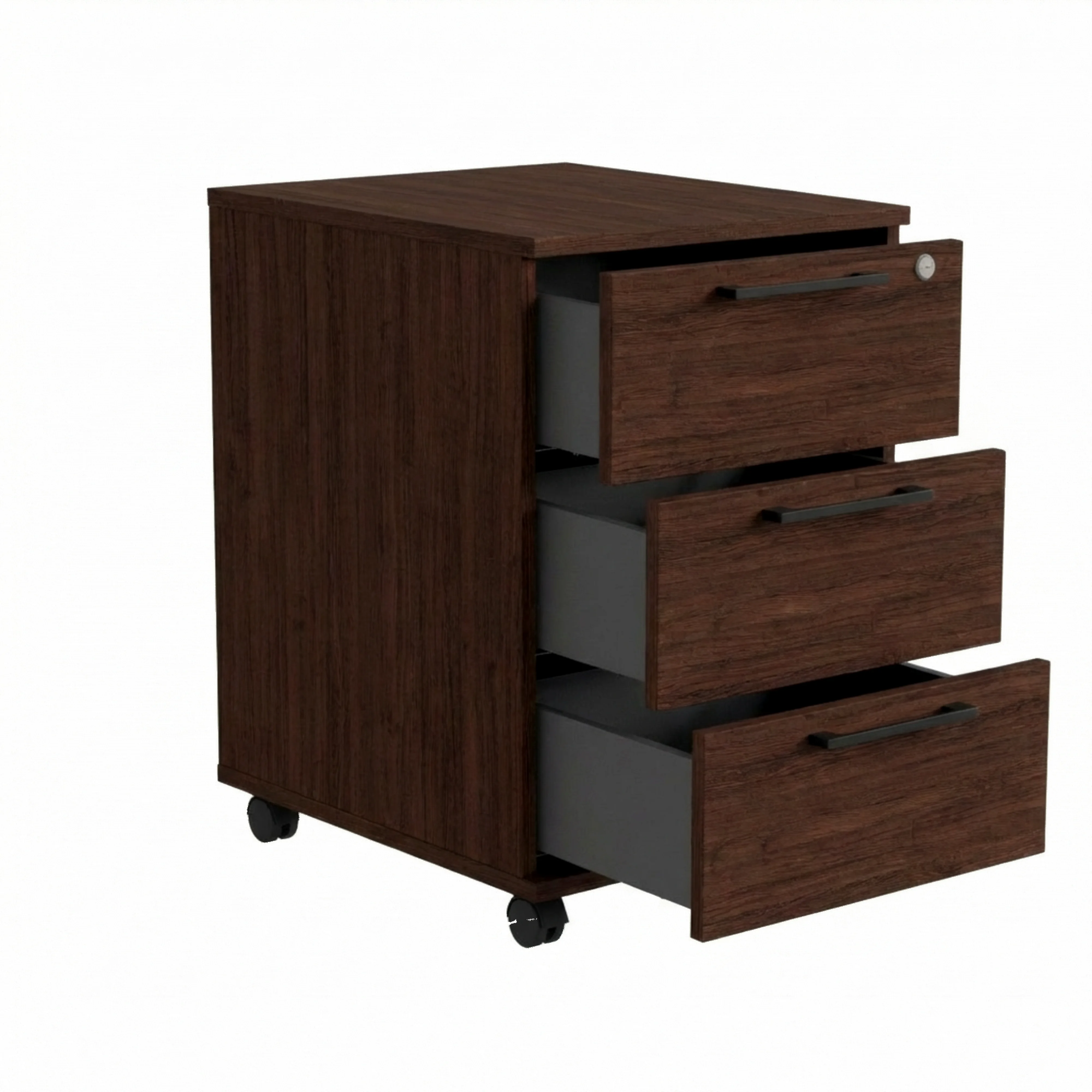 Kontenerek Pod biurko Na Kółkach Zamykany z 3 Szufladami Wenge Max