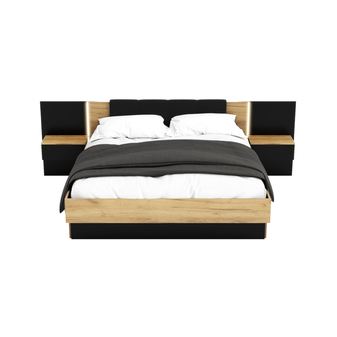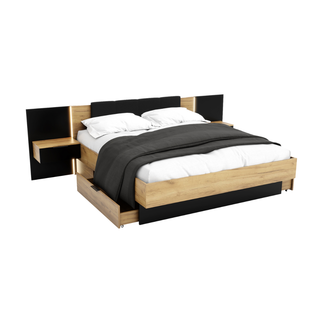 ✅ Dwie wiszące szuflady boczne – Dodatkowe szuflady zawieszone po bokach łóżka sypialnianego zapewniają wygodne miejsce na przechowywanie drobiazgów, takich jak książki, telefon czy akcesoria – zawsze w zasięgu ręki.