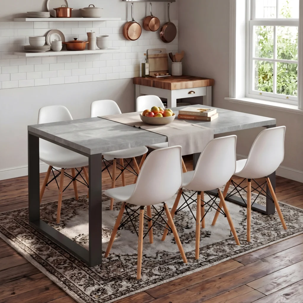 ✅ Nogi do wyboru – Stół do kuchni Vini V oferuje szeroki wybór nóg w różnych szerokościach profili stalowych, co pozwala dopasować charakter mebla do wystroju wnętrza — od surowego industrialnego loftu po nowoczesną, minimalistyczną jadalnię w kolorze Beton Jasny.