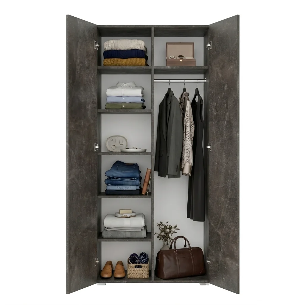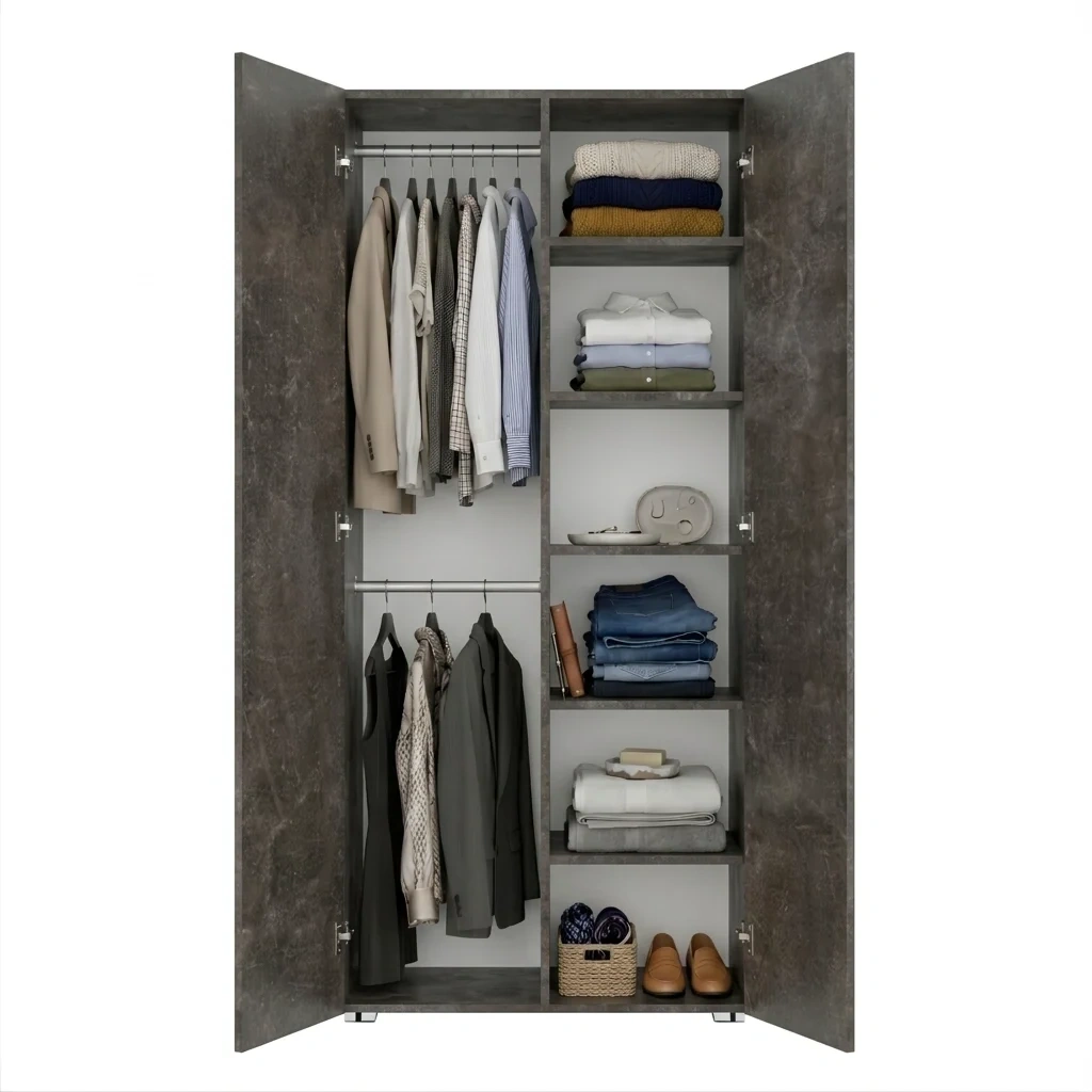 Szafa Kama Podwójna łączy funkcjonalność z elastycznością dzięki regulowanym półkom i zmiennym pozycjom drążka na ubrania. Precyzyjne dopasowanie do 1 centymetra oraz opcja nadstawki sprawiają, że mebel idealnie wtopił się w każdą sypialnię i przedpokój. To rozwiązanie przeznaczone dla osób, które oczekują niezawodności i długotrwałego użytkowania od mebla do przechowywania ubrań i rzeczy osobistych.