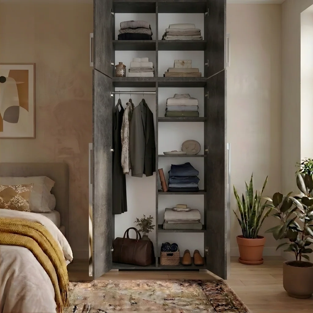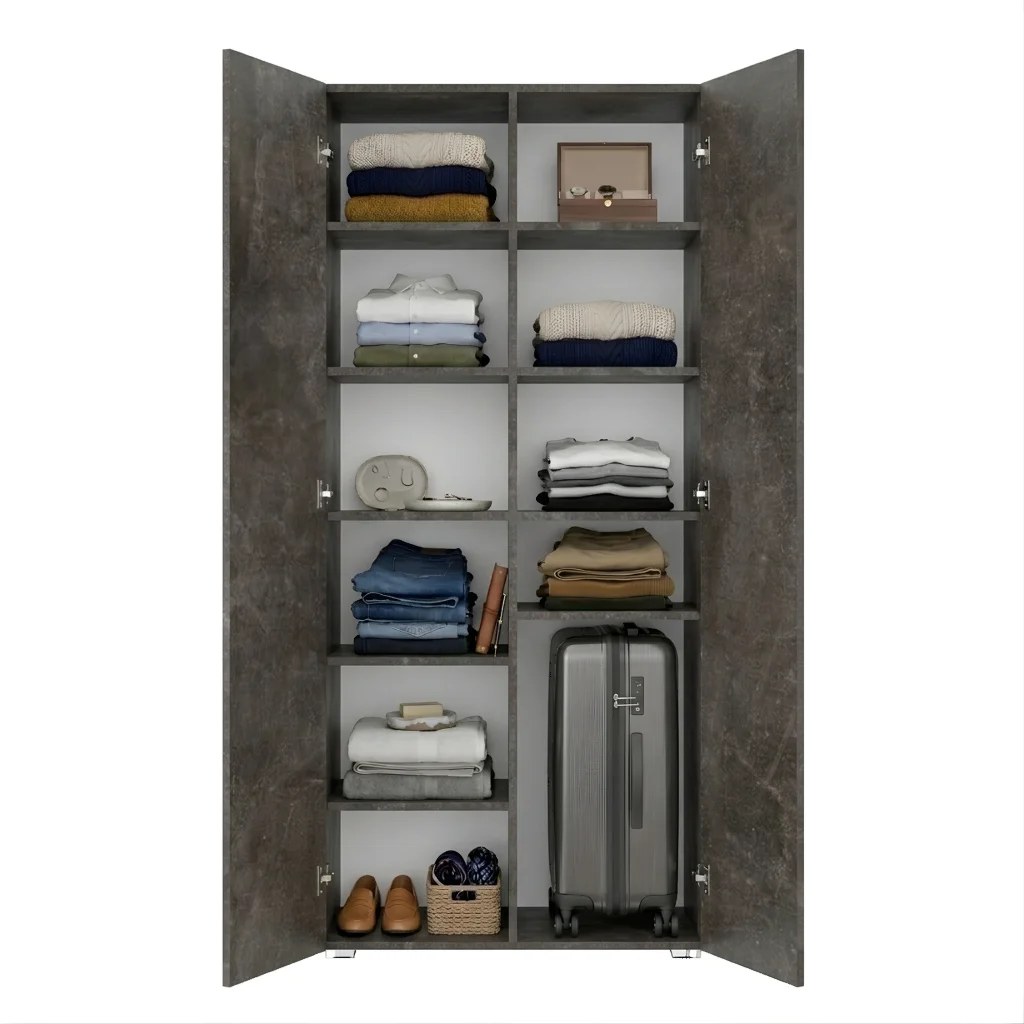 ✅ Regulacja półek – Boki szafy wyposażone są w nawierty co 6,4 centymetra, co umożliwia dowolną zmianę wysokości półek w zależności od przechowywanych przedmiotów. Masz pełną kontrolę nad organizacją przestrzeni wewnątrz szafy na ubrania, bez konieczności dodatkowych narzędzi czy pracy remontowej.