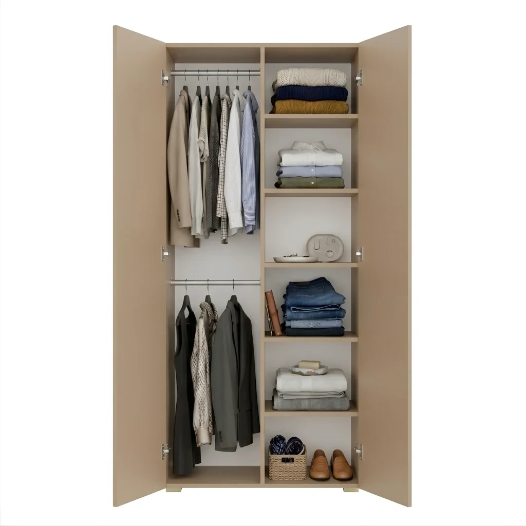 Szafa Kama Podwójna łączy funkcjonalność z elastycznością dzięki regulowanym półkom i zmiennym pozycjom drążka na ubrania. Precyzyjne dopasowanie do 1 centymetra oraz opcja nadstawki sprawiają, że mebel idealnie wtopił się w każdą sypialnię i przedpokój. To rozwiązanie przeznaczone dla osób, które oczekują niezawodności i długotrwałego użytkowania od mebla do przechowywania ubrań i rzeczy osobistych.