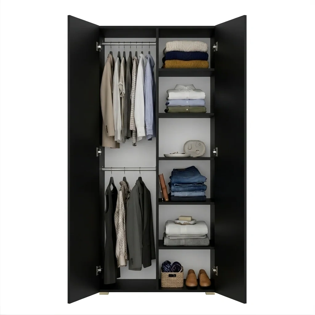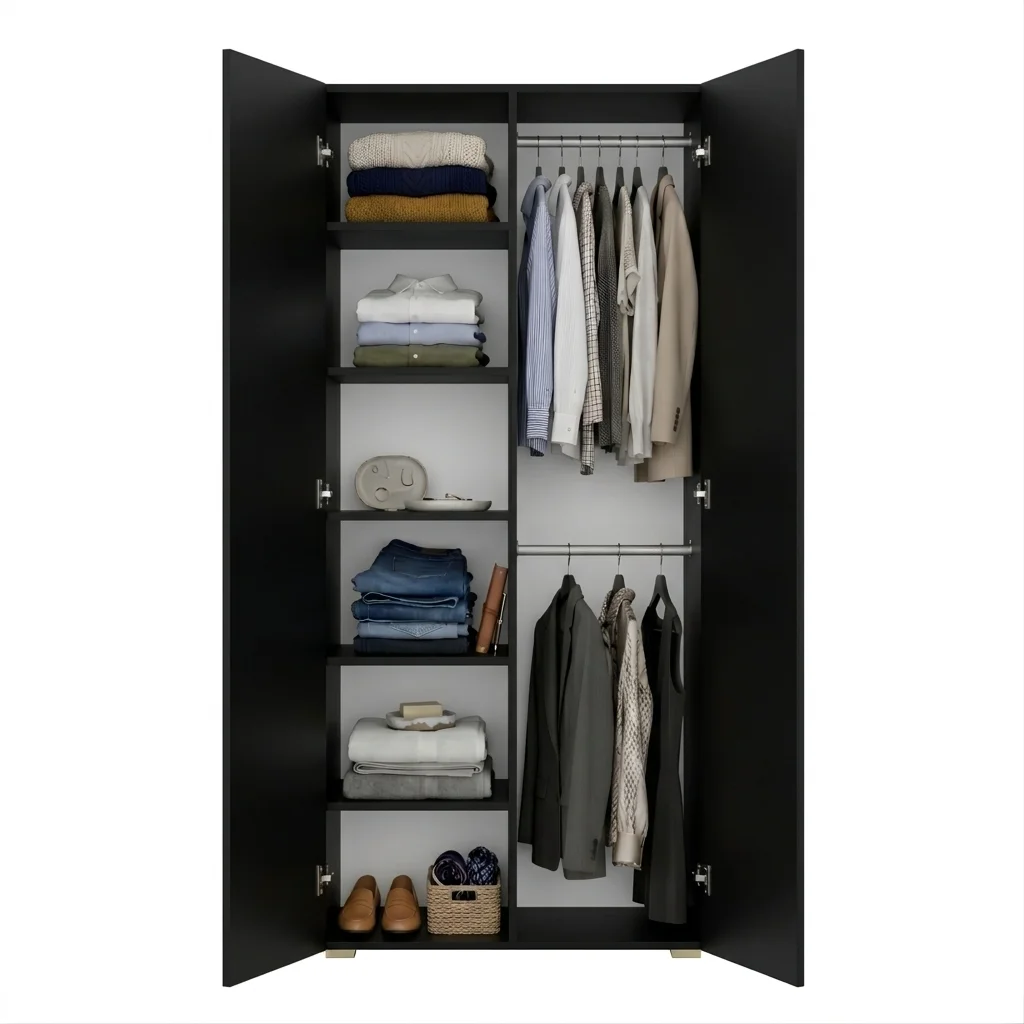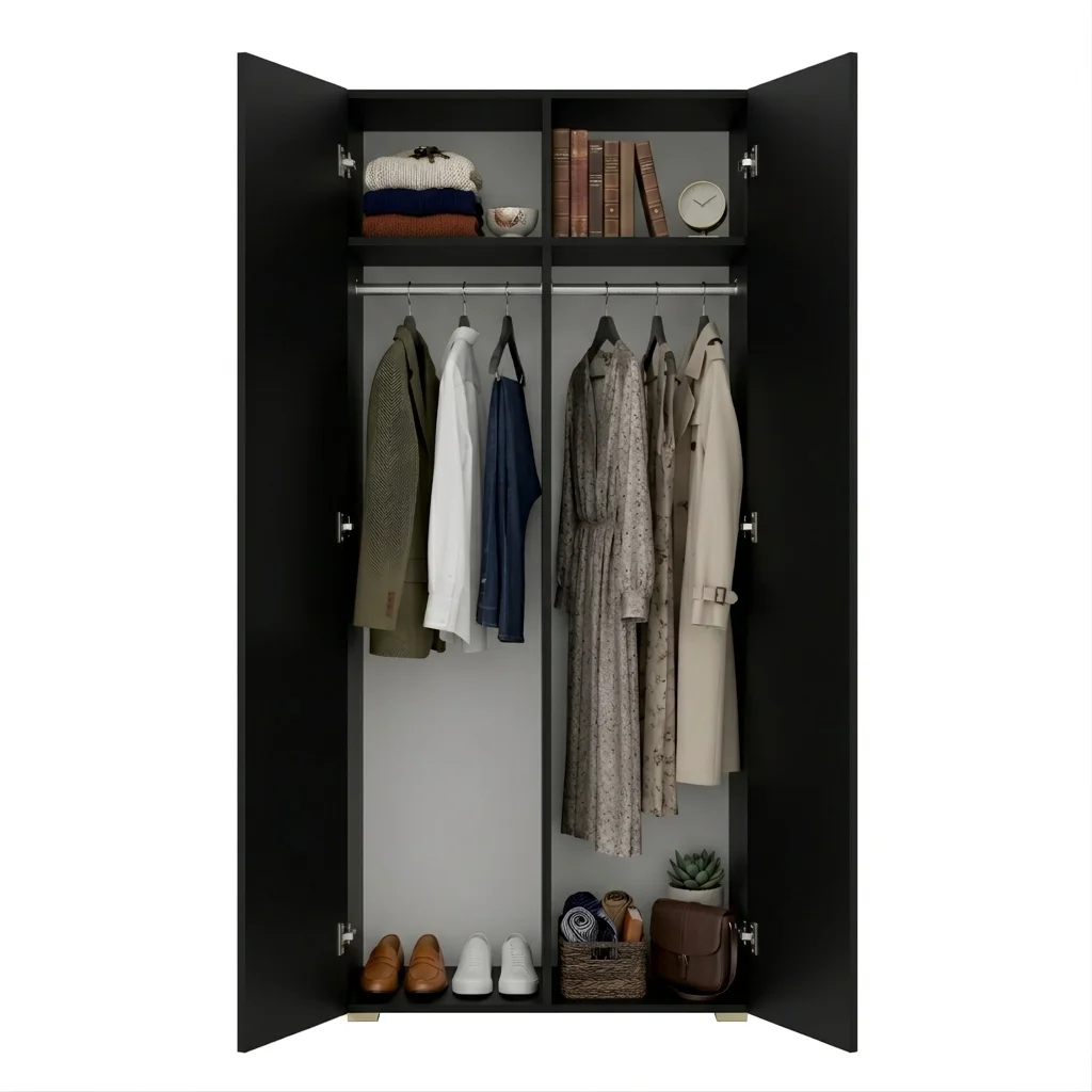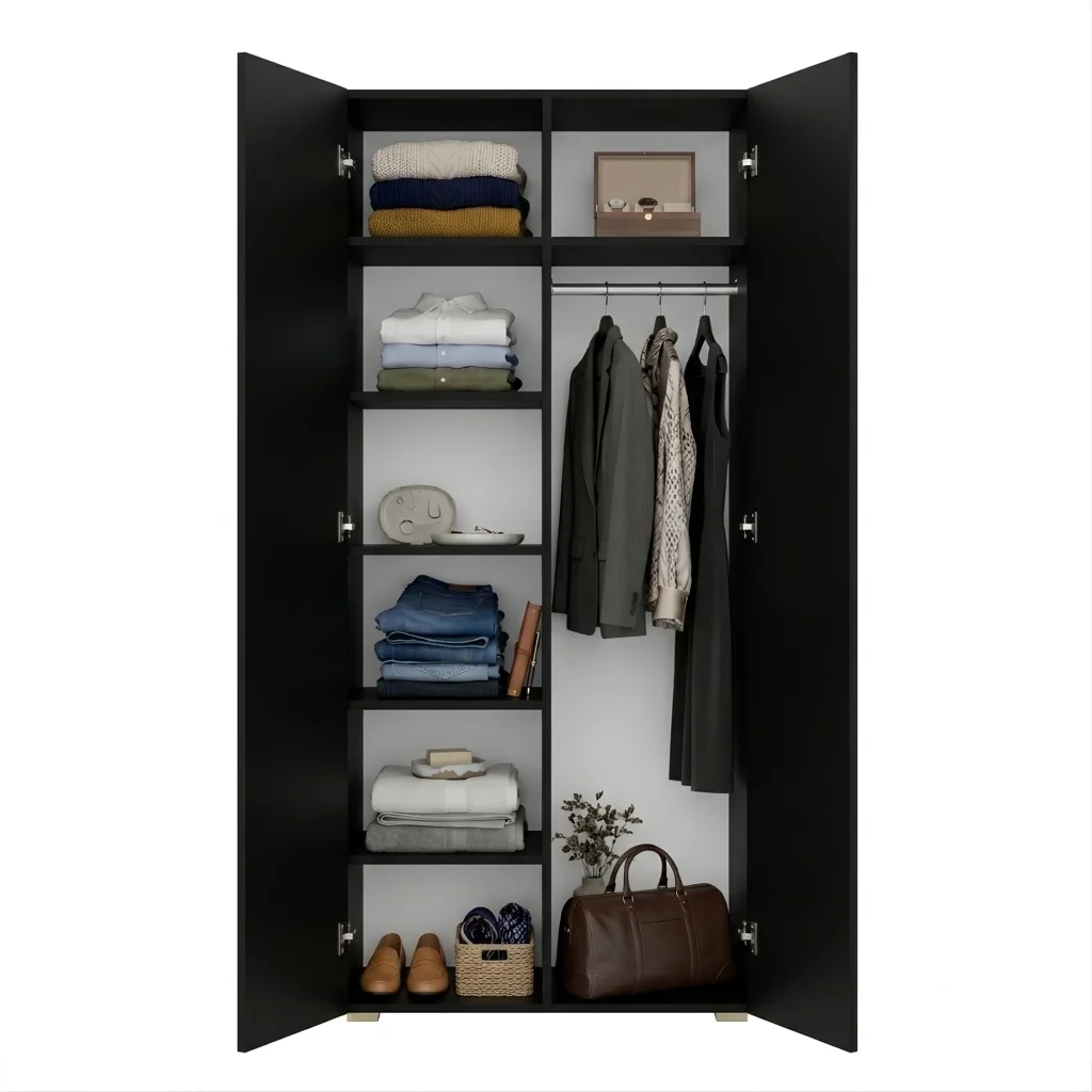 Szafa na wymiar do przedpokoju szafa do sypialni na ubrania z półkami Czarna Kama Podwójna