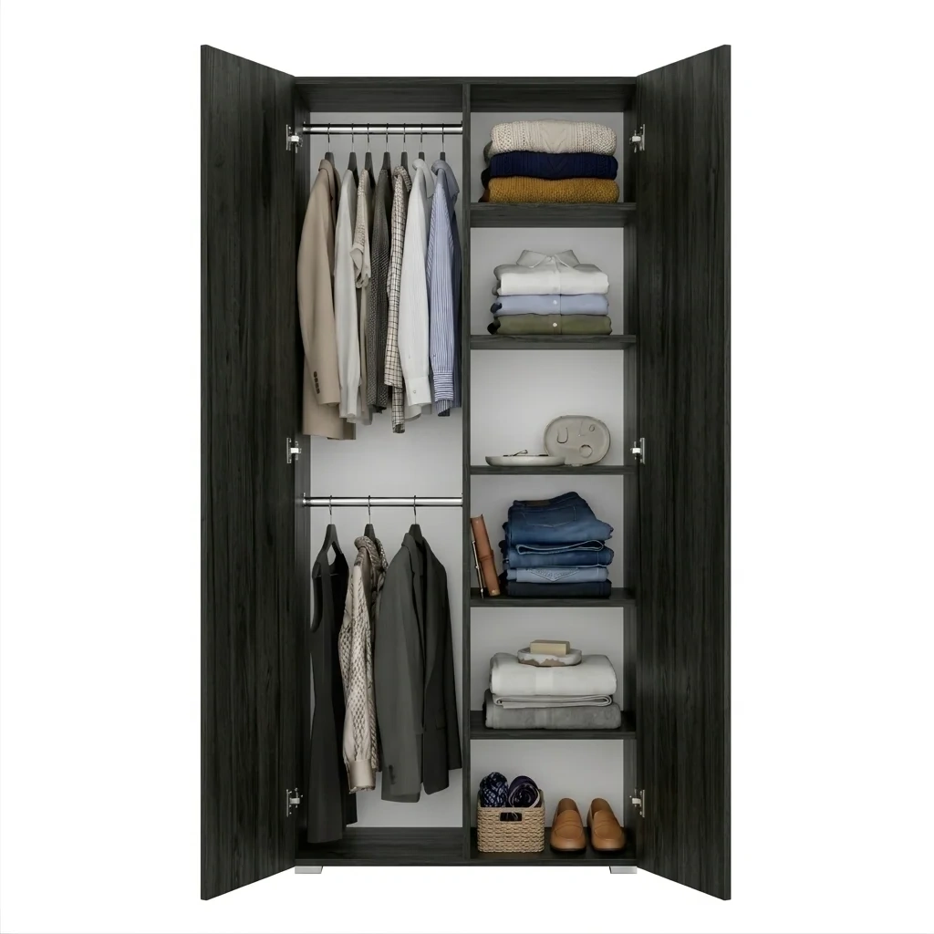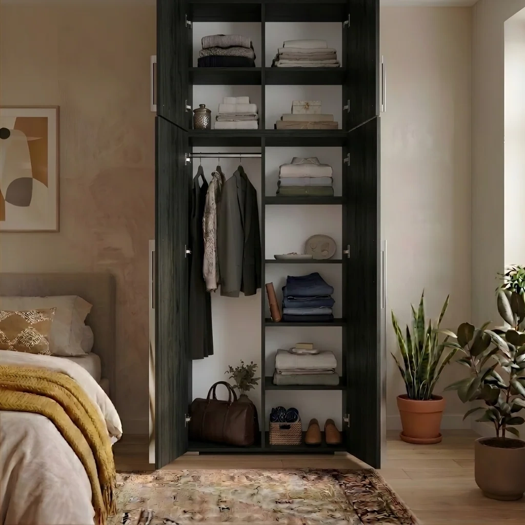 ✅ Regulacja półek – Boki szafy wyposażone są w nawierty co 6,4 centymetra, co umożliwia dowolną zmianę wysokości półek w zależności od przechowywanych przedmiotów. Masz pełną kontrolę nad organizacją przestrzeni wewnątrz szafy na ubrania, bez konieczności dodatkowych narzędzi czy pracy remontowej.