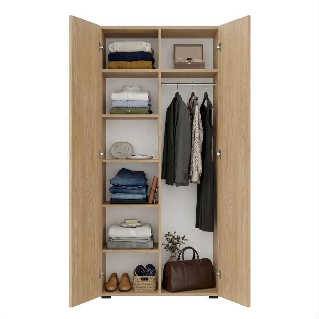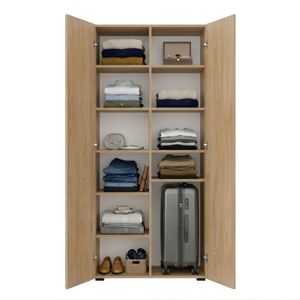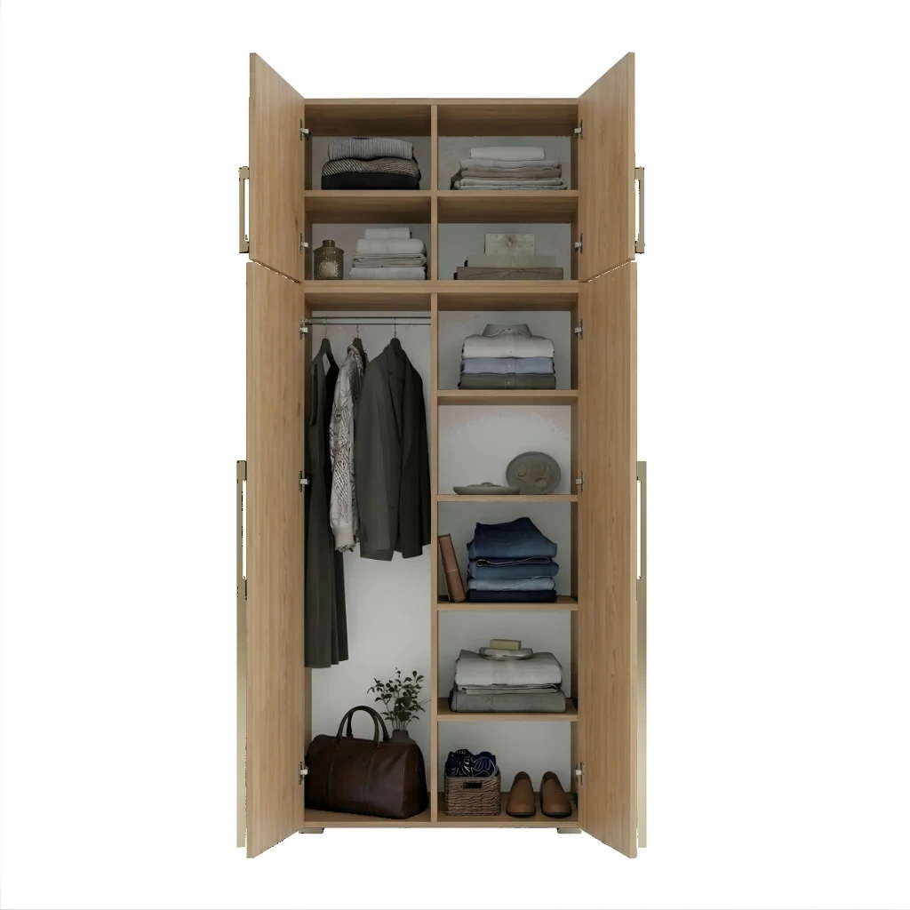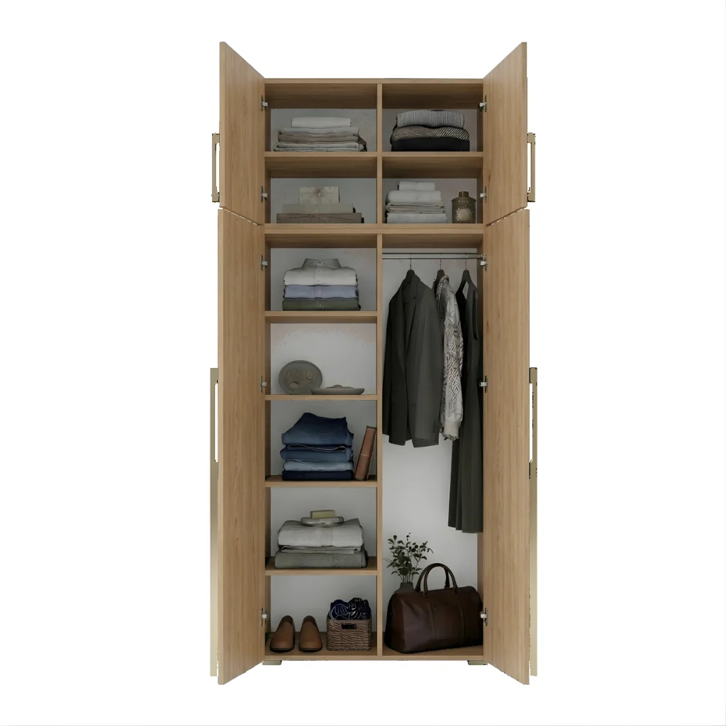 Szafa Kama Podwójna łączy funkcjonalność z elastycznością dzięki regulowanym półkom i zmiennym pozycjom drążka na ubrania. Precyzyjne dopasowanie do 1 centymetra oraz opcja nadstawki sprawiają, że mebel idealnie wtopił się w każdą sypialnię i przedpokój. To rozwiązanie przeznaczone dla osób, które oczekują niezawodności i długotrwałego użytkowania od mebla do przechowywania ubrań i rzeczy osobistych.