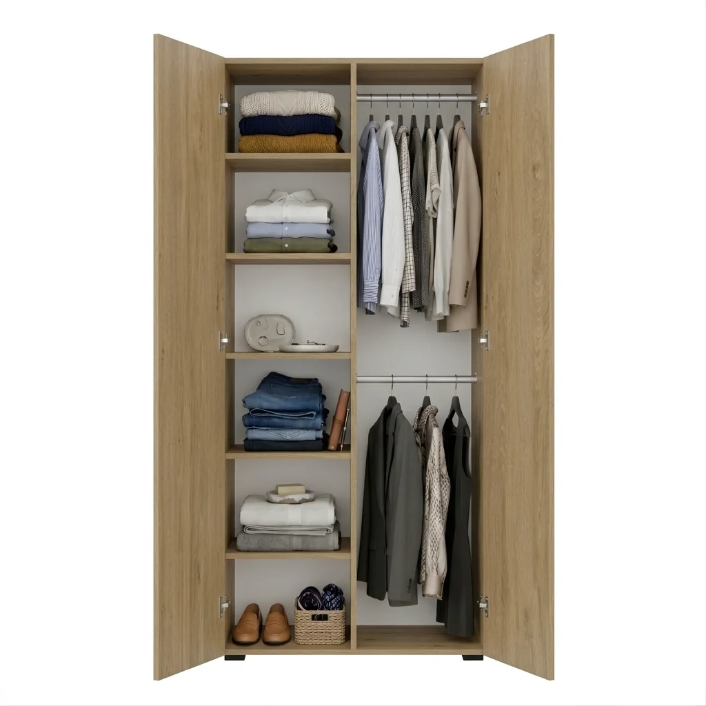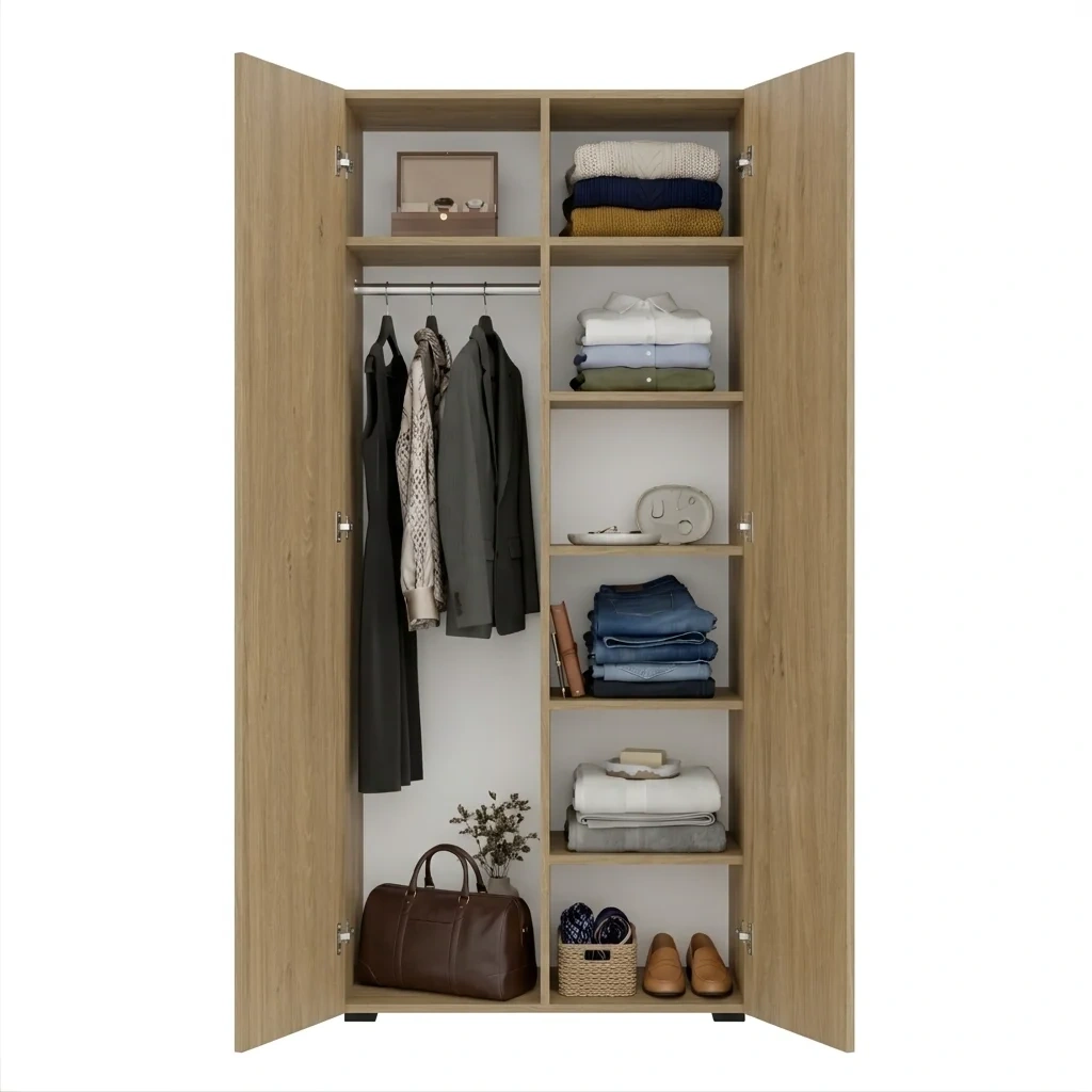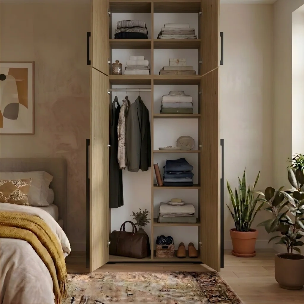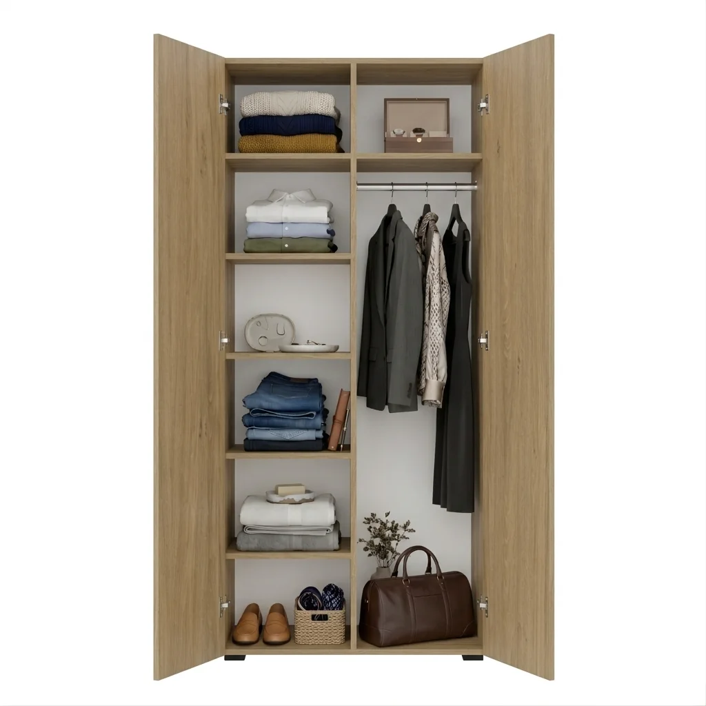 ✅ Regulacja półek – Boki szafy wyposażone są w nawierty co 6,4 centymetra, co umożliwia dowolną zmianę wysokości półek w zależności od przechowywanych przedmiotów. Masz pełną kontrolę nad organizacją przestrzeni wewnątrz szafy na ubrania, bez konieczności dodatkowych narzędzi czy pracy remontowej.