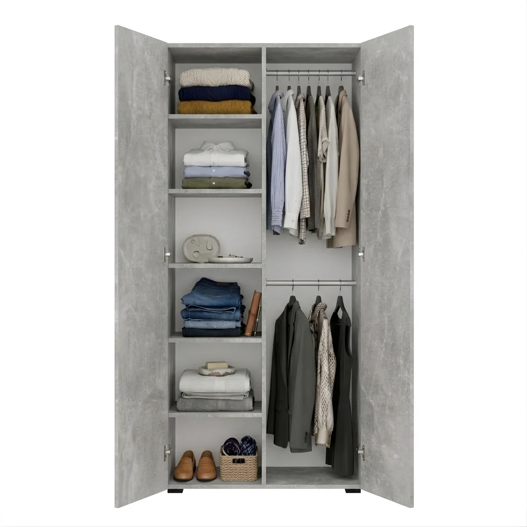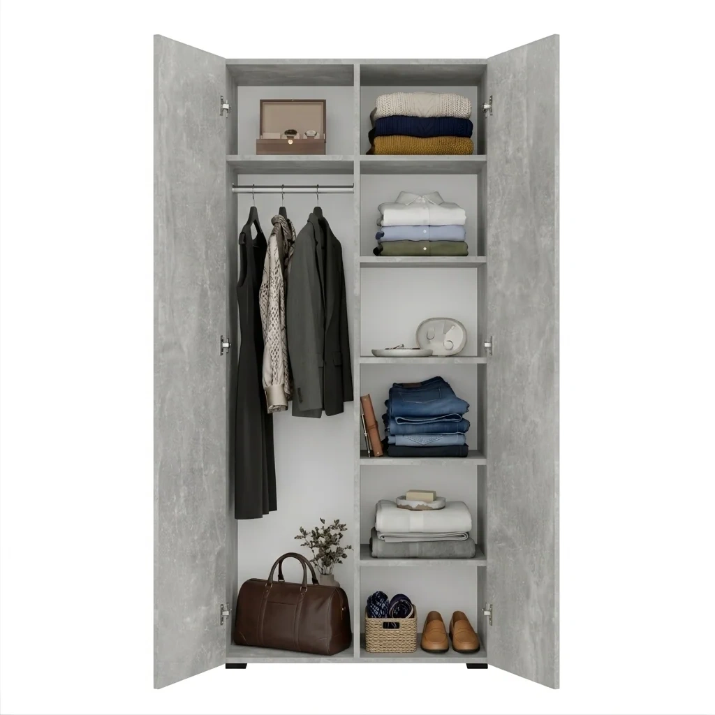 Szafa Kama Podwójna Nadstawka wyróżnia się dopasowaniem z dokładnością do 1 cm, co czyni ją doskonałym wyborem zarówno jako szafa do przedpokoju, jak i szafa do sypialni. Regulowane półki, elastyczny montaż drążka oraz możliwość rozbudowy o nadstawkę sprawiają, że wnętrze szafy można dostosować dokładnie do własnych potrzeb i przechowywanej garderoby. Solidna konstrukcja i przemyślany system organizacji przestrzeni gwarantują funkcjonalność i trwałość w codziennym użytkowaniu. Dostępna w kolorze Beton Jasny, szafa podwójna Kama Podwójna Nadstawka harmonijnie wpisuje się w różne style aranżacji wnętrz.