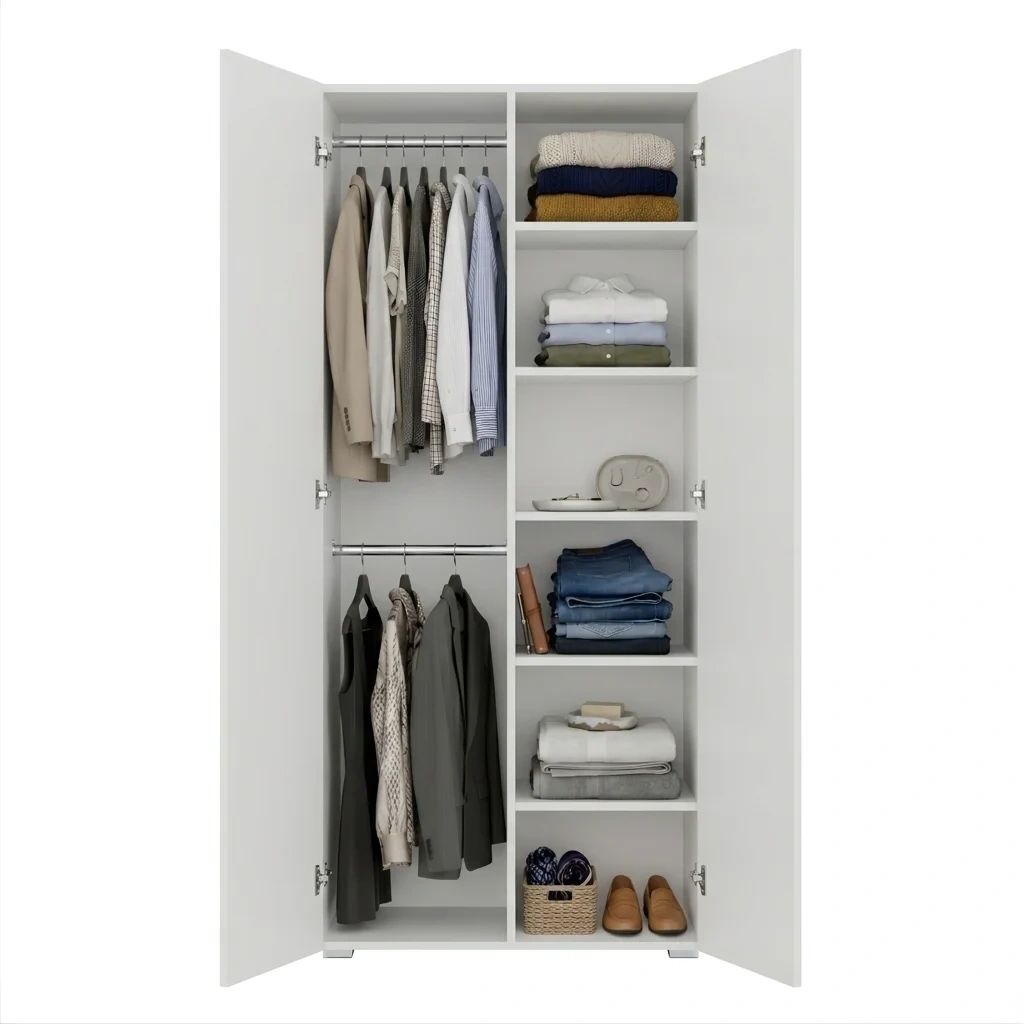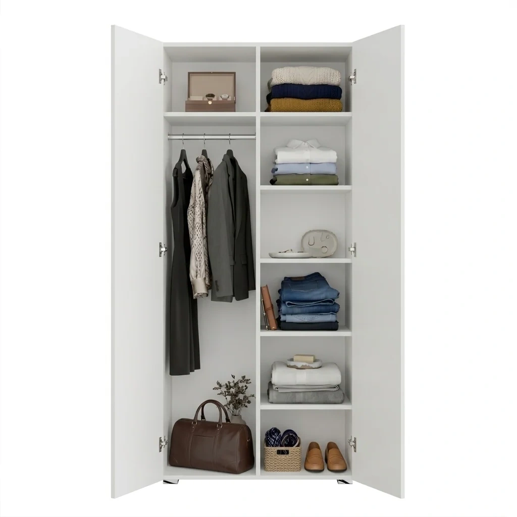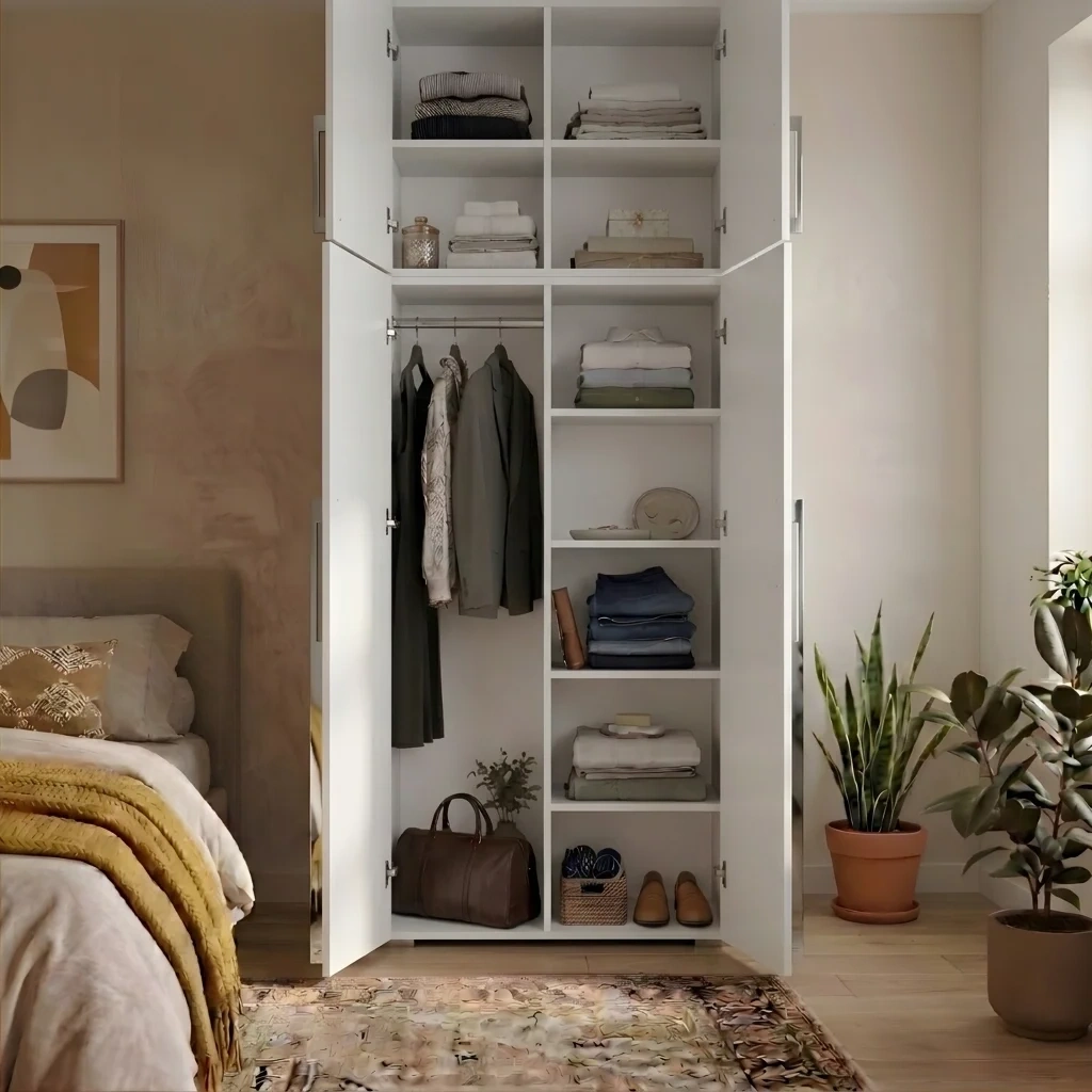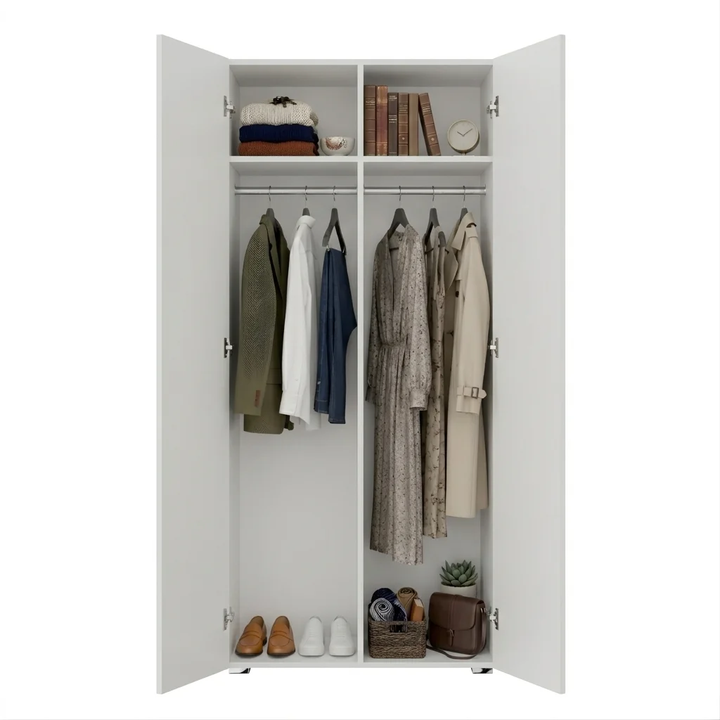 Szafa Kama Podwójna Nadstawka wyróżnia się dopasowaniem z dokładnością do 1 cm, co czyni ją doskonałym wyborem zarówno jako szafa do przedpokoju, jak i szafa do sypialni. Regulowane półki, elastyczny montaż drążka oraz możliwość rozbudowy o nadstawkę sprawiają, że wnętrze szafy można dostosować dokładnie do własnych potrzeb i przechowywanej garderoby. Solidna konstrukcja i przemyślany system organizacji przestrzeni gwarantują funkcjonalność i trwałość w codziennym użytkowaniu. Dostępna w kolorze Biała, szafa podwójna Kama Podwójna Nadstawka harmonijnie wpisuje się w różne style aranżacji wnętrz.