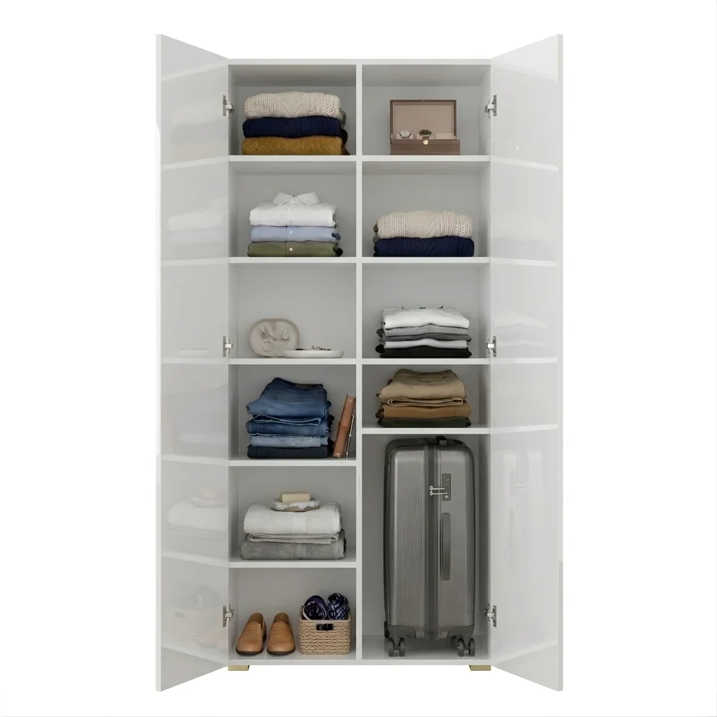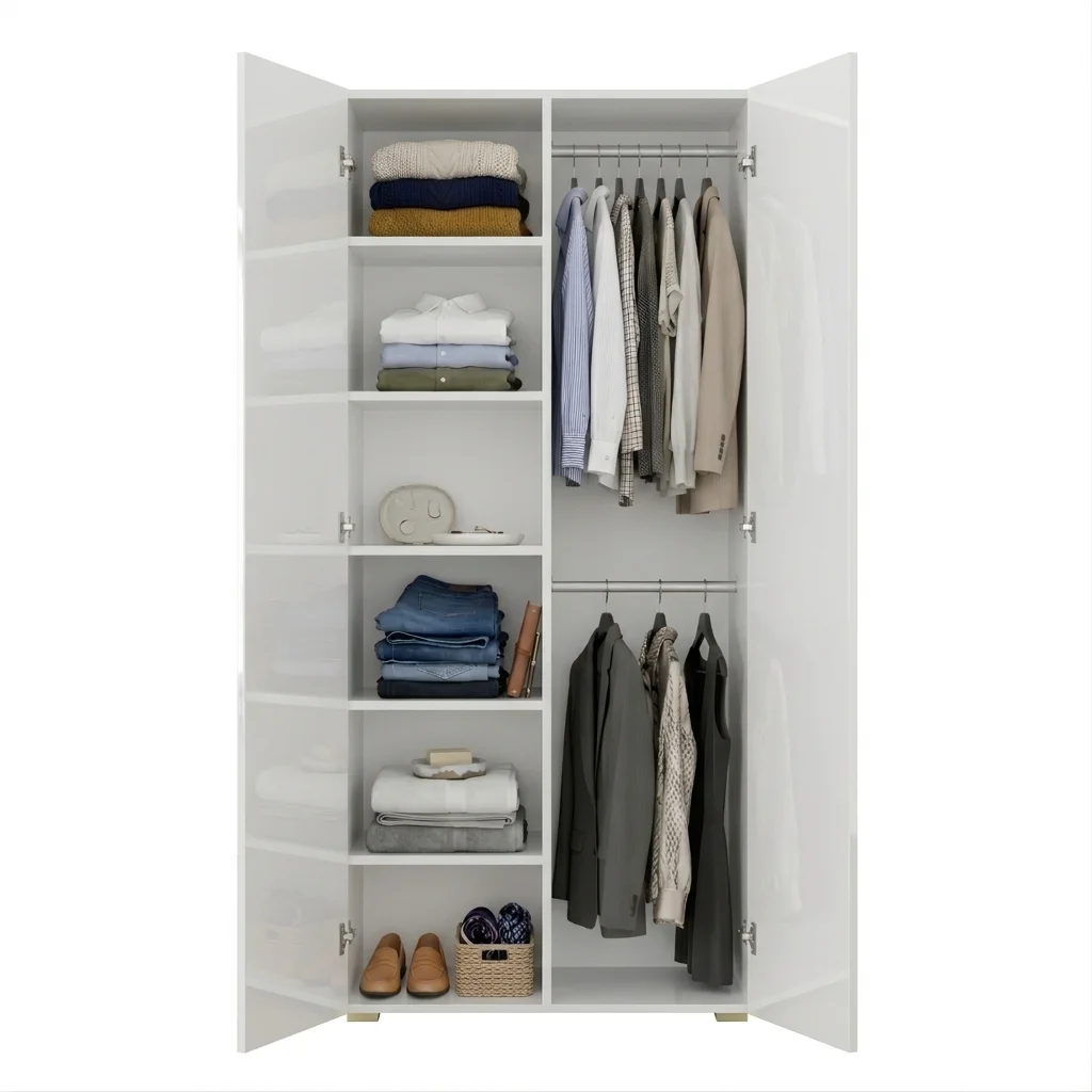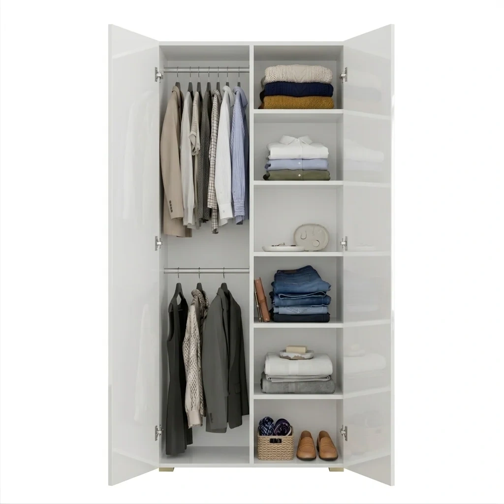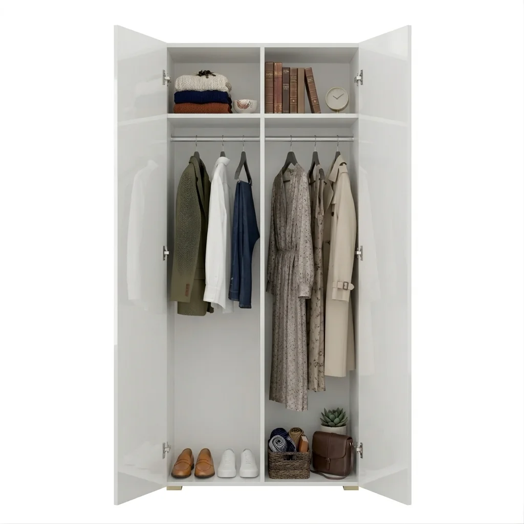 Szafa Kama Podwójna Nadstawka wyróżnia się dopasowaniem z dokładnością do 1 cm, co czyni ją doskonałym wyborem zarówno jako szafa do przedpokoju, jak i szafa do sypialni. Regulowane półki, elastyczny montaż drążka oraz możliwość rozbudowy o nadstawkę sprawiają, że wnętrze szafy można dostosować dokładnie do własnych potrzeb i przechowywanej garderoby. Solidna konstrukcja i przemyślany system organizacji przestrzeni gwarantują funkcjonalność i trwałość w codziennym użytkowaniu. Dostępna w kolorze Biały Połysk, szafa podwójna Kama Podwójna Nadstawka harmonijnie wpisuje się w różne style aranżacji wnętrz.