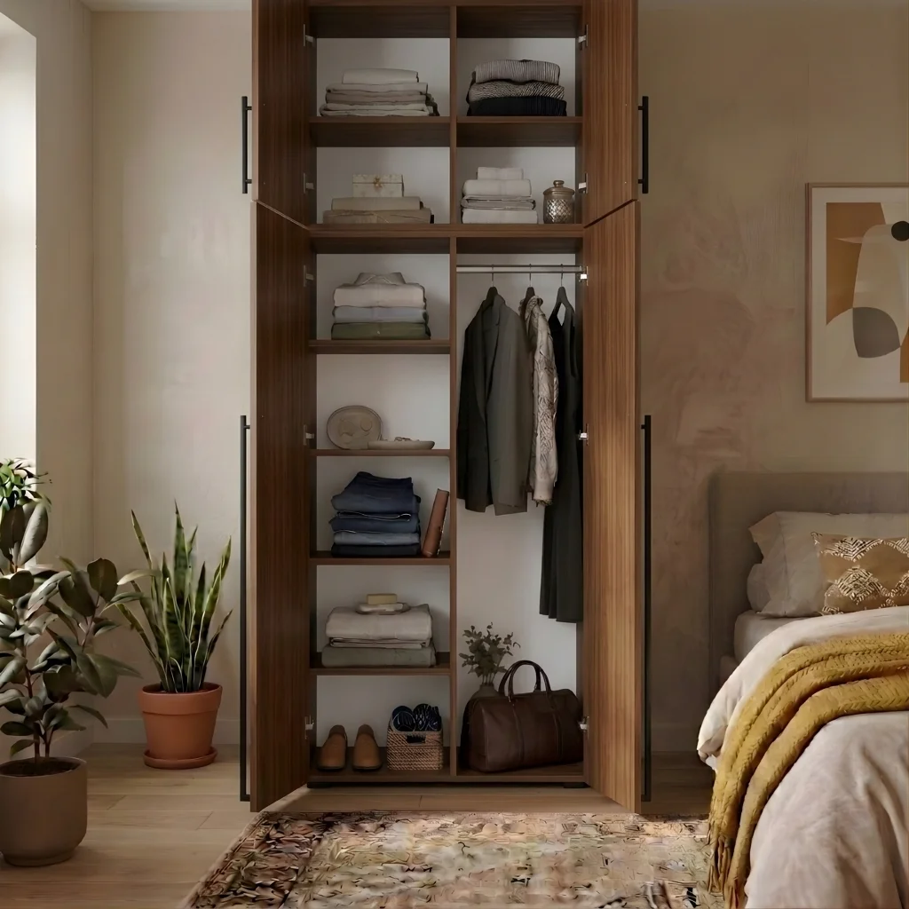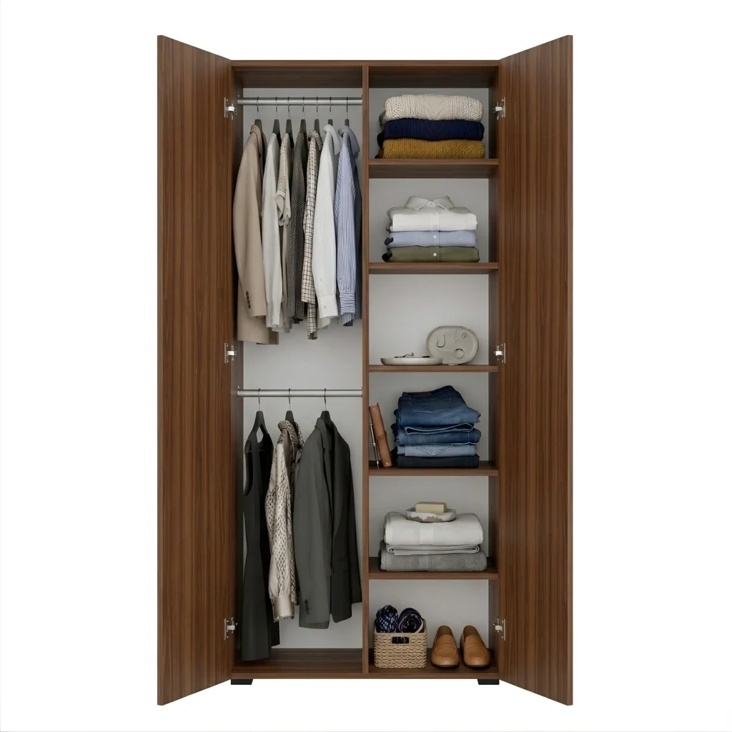 Szafa Kama Podwójna Nadstawka wyróżnia się dopasowaniem z dokładnością do 1 cm, co czyni ją doskonałym wyborem zarówno jako szafa do przedpokoju, jak i szafa do sypialni. Regulowane półki, elastyczny montaż drążka oraz możliwość rozbudowy o nadstawkę sprawiają, że wnętrze szafy można dostosować dokładnie do własnych potrzeb i przechowywanej garderoby. Solidna konstrukcja i przemyślany system organizacji przestrzeni gwarantują funkcjonalność i trwałość w codziennym użytkowaniu. Dostępna w kolorze Orzech, szafa podwójna Kama Podwójna Nadstawka harmonijnie wpisuje się w różne style aranżacji wnętrz.