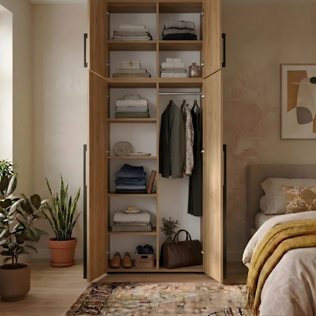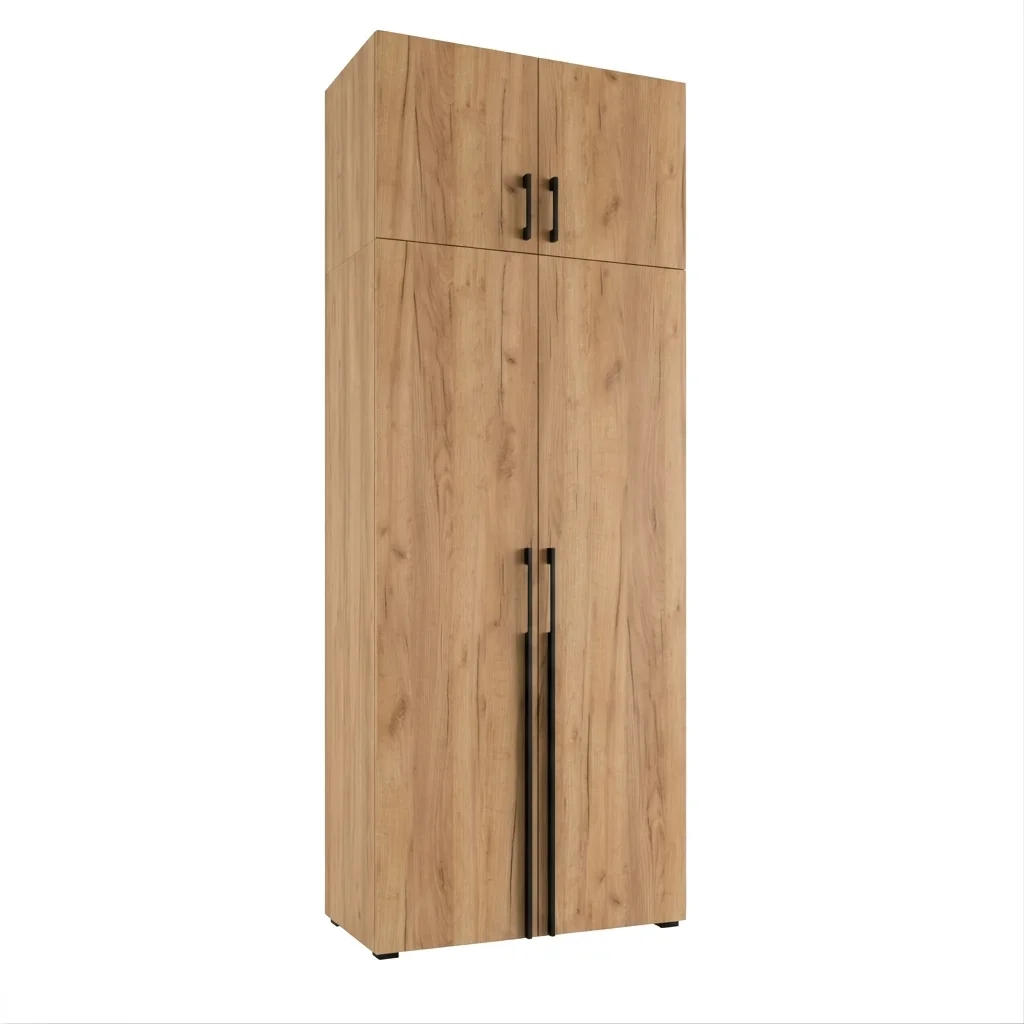 Szafa Kama Podwójna Nadstawka wyróżnia się dopasowaniem z dokładnością do 1 cm, co czyni ją doskonałym wyborem zarówno jako szafa do przedpokoju, jak i szafa do sypialni. Regulowane półki, elastyczny montaż drążka oraz możliwość rozbudowy o nadstawkę sprawiają, że wnętrze szafy można dostosować dokładnie do własnych potrzeb i przechowywanej garderoby. Solidna konstrukcja i przemyślany system organizacji przestrzeni gwarantują funkcjonalność i trwałość w codziennym użytkowaniu. Dostępna w kolorze Złoty Craft, szafa podwójna Kama Podwójna Nadstawka harmonijnie wpisuje się w różne style aranżacji wnętrz.