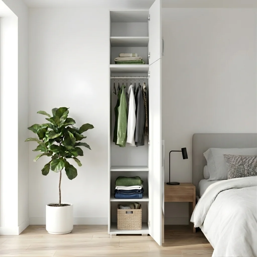 ✅ Szafa pod wymiar – Szafa na wymiar Kama Nadstawka pozwala swobodnie określić jej dokładne wymiary, tak aby idealnie dopasować mebel do dostępnej przestrzeni w Twoim wnętrzu. Dzięki temu szafa pojedyncza w kolorze Biała zajmuje dokładnie tyle miejsca, ile potrzebujesz — bez kompromisów i bez marnowania przestrzeni.
