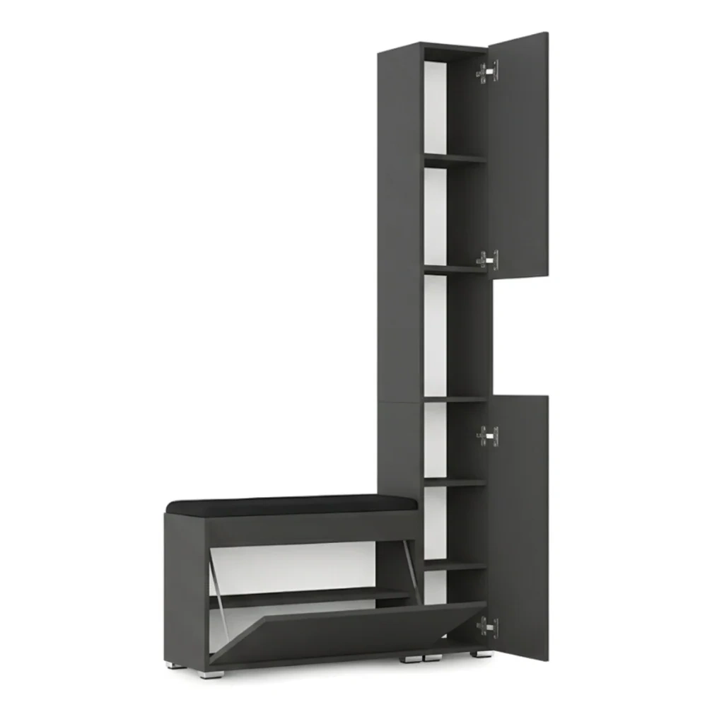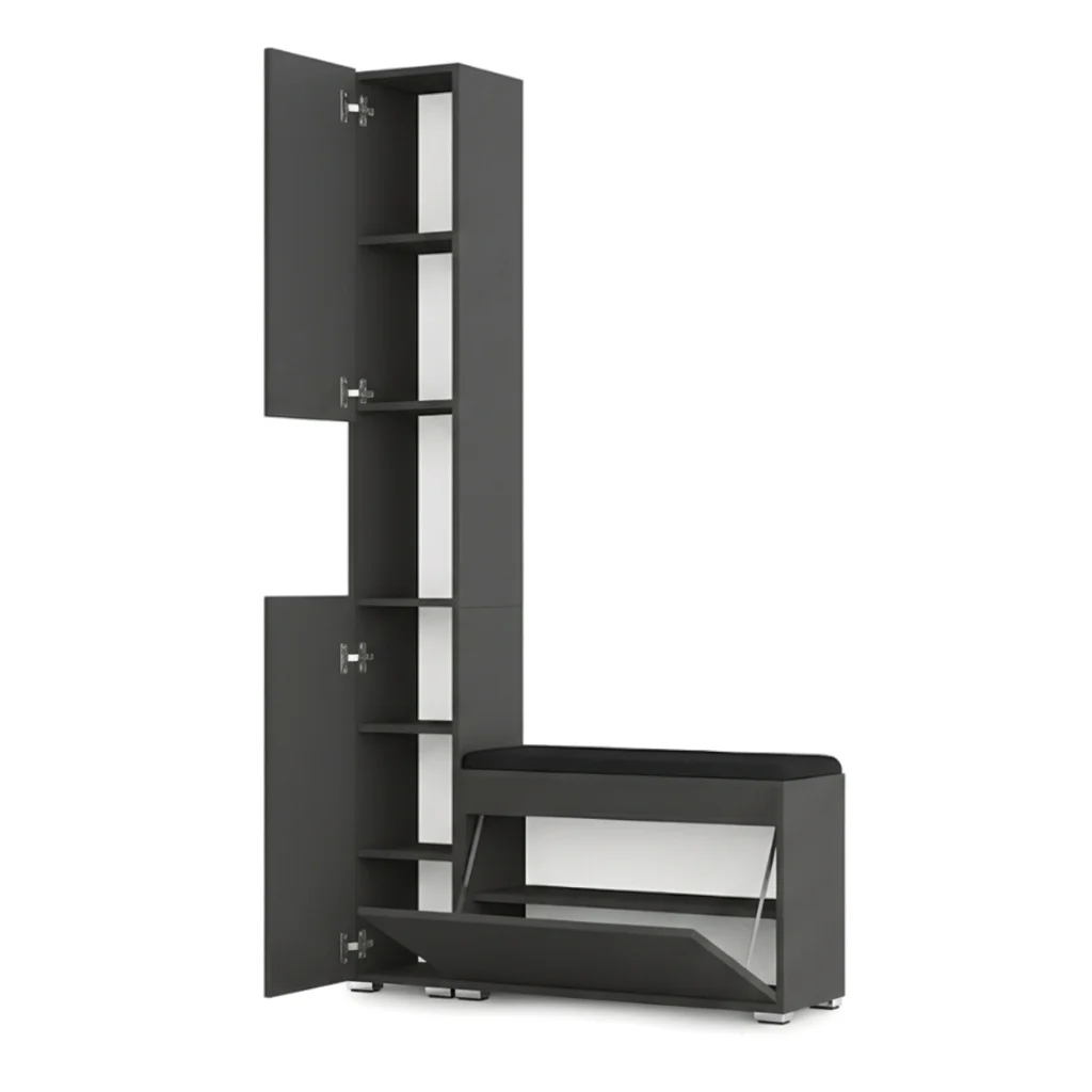Szafka Do Przedpokoju Na Buty Pojemna z Siedziskiem Słupek Z Półkami Antracyt Nova Sora