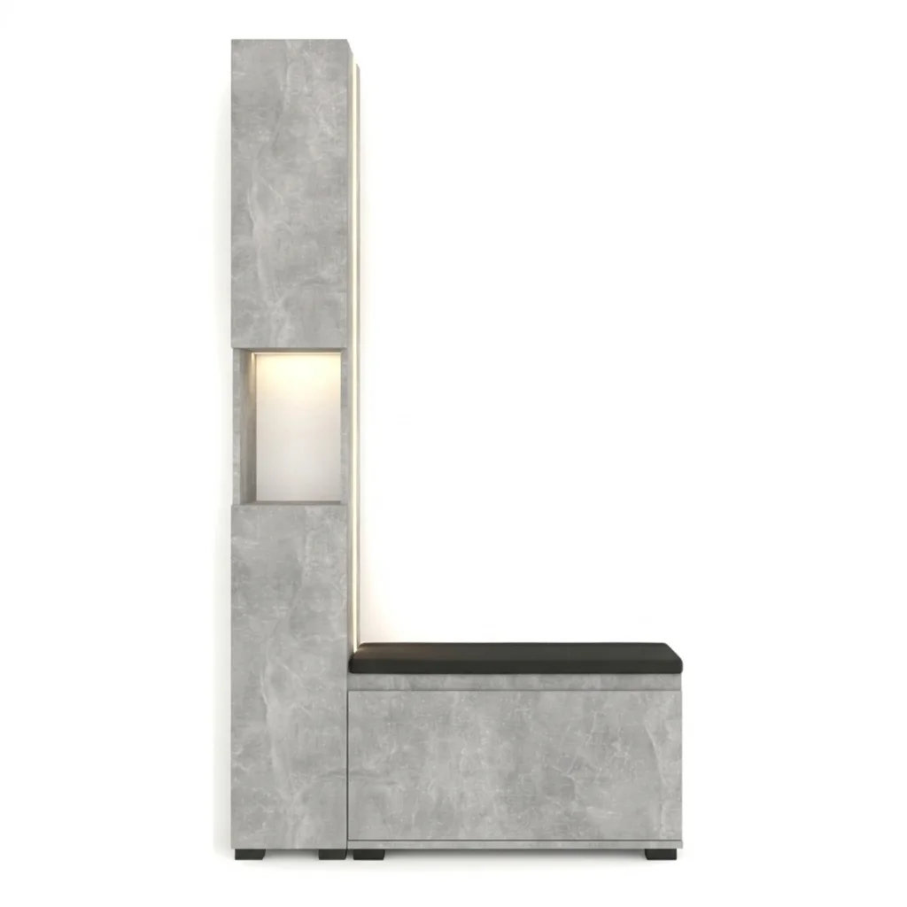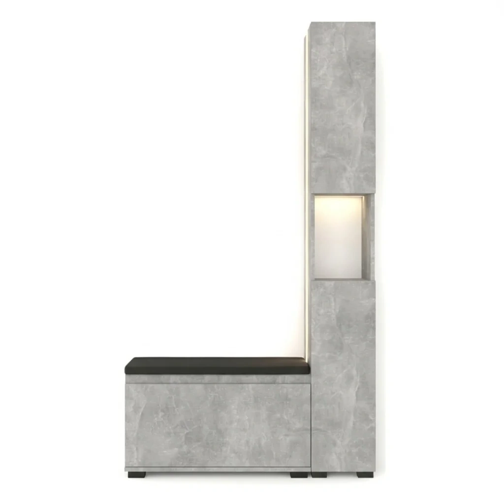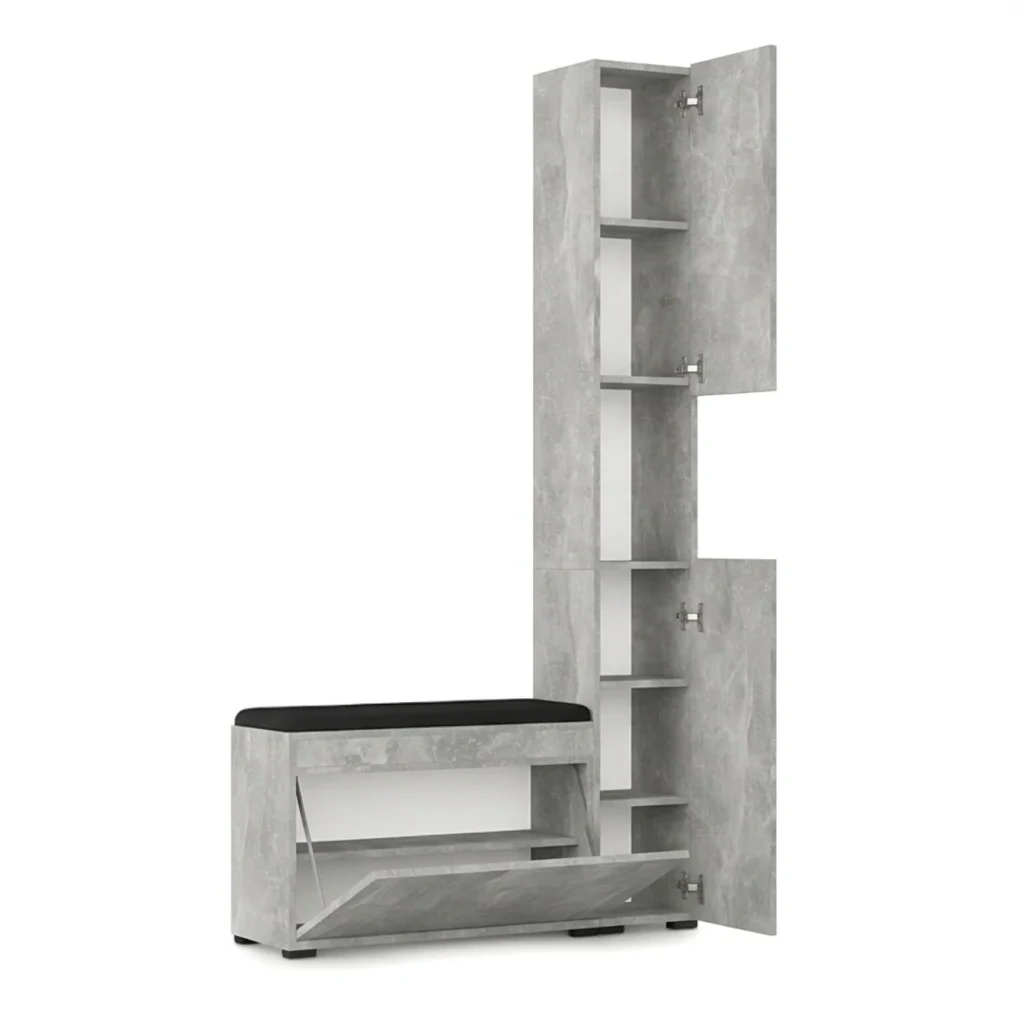 Szafka Do Przedpokoju Na Buty Pojemna z Siedziskiem Słupek Z Półkami Beton Jasny Nova Sora