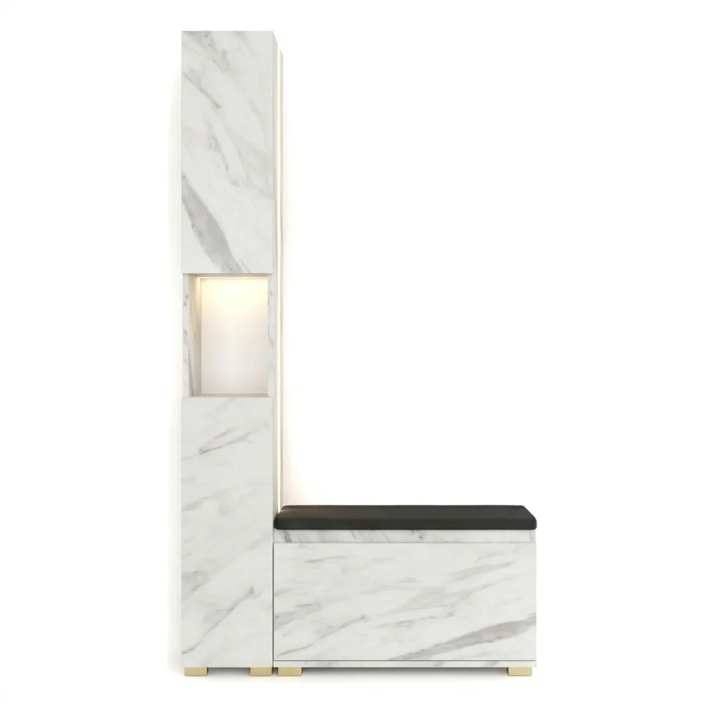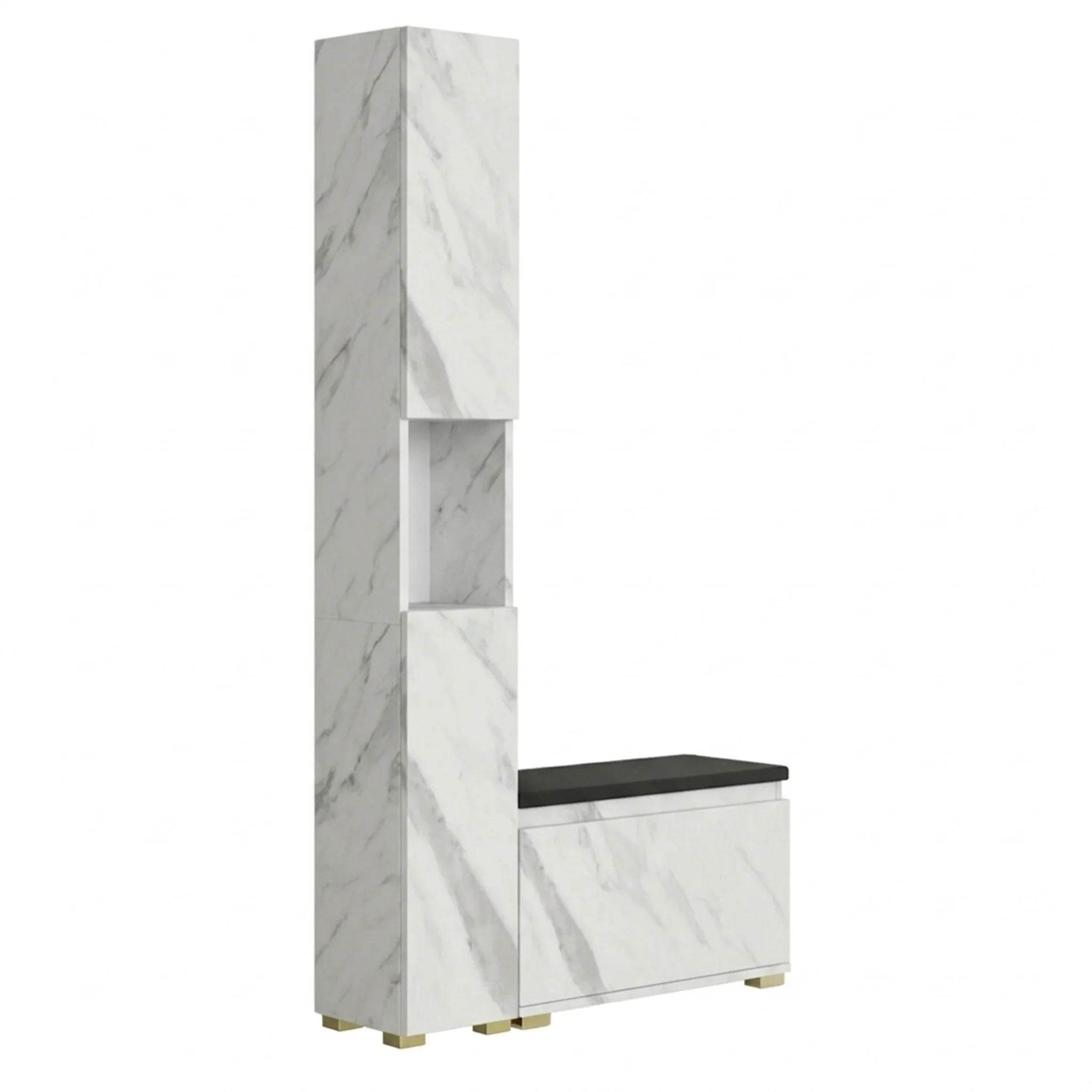 Szafka Do Przedpokoju Na Buty Pojemna z Siedziskiem Słupek Z Półkami Biały Marmur Nova Sora
