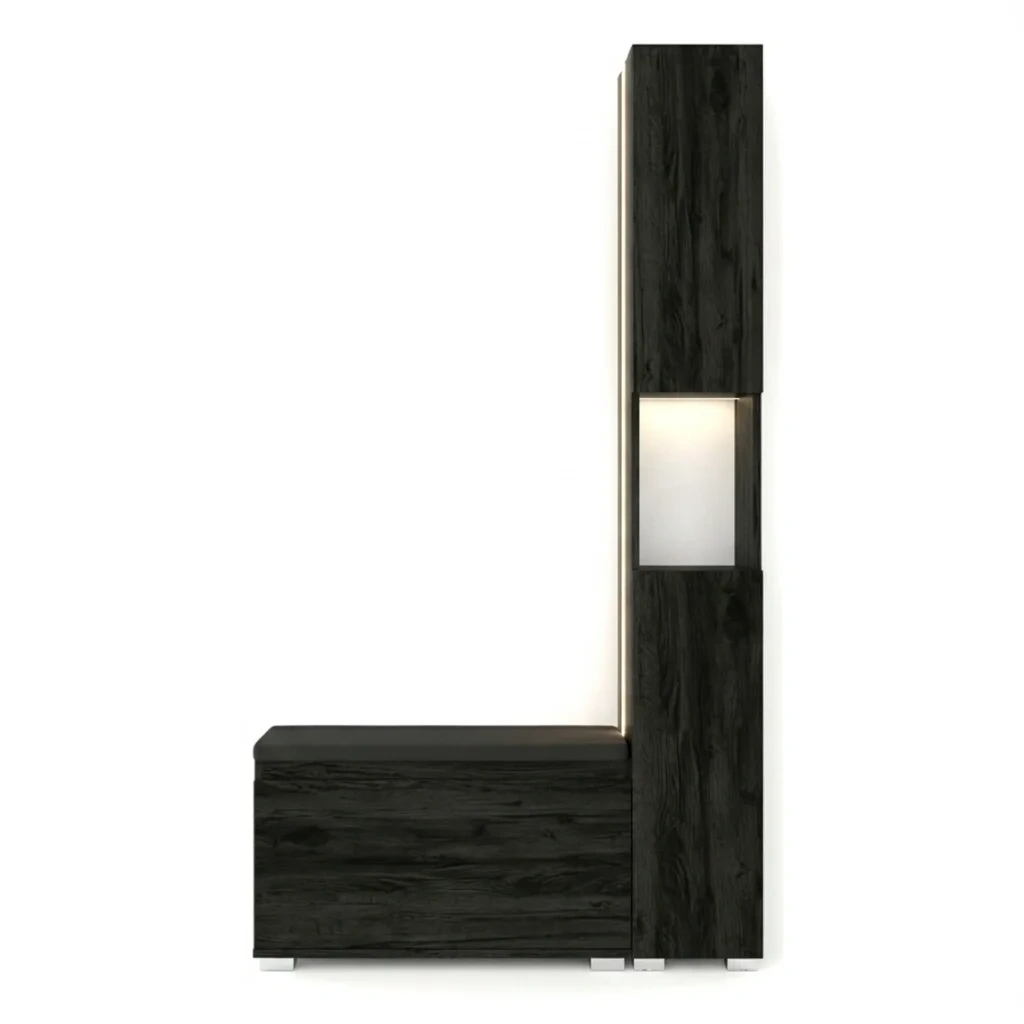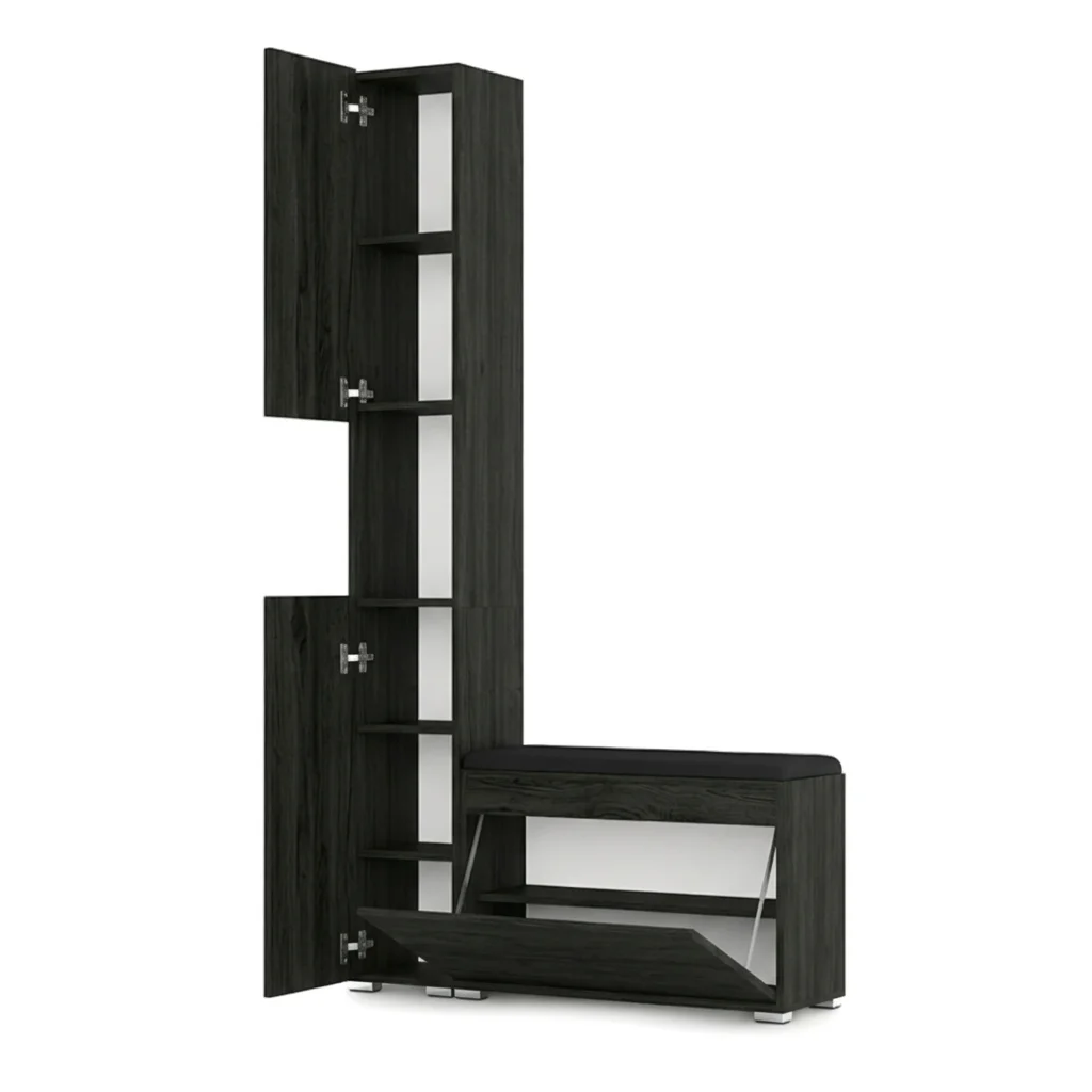 Szafka Do Przedpokoju Na Buty Pojemna z Siedziskiem Słupek Z Półkami Czarny Onyx Nova Sora