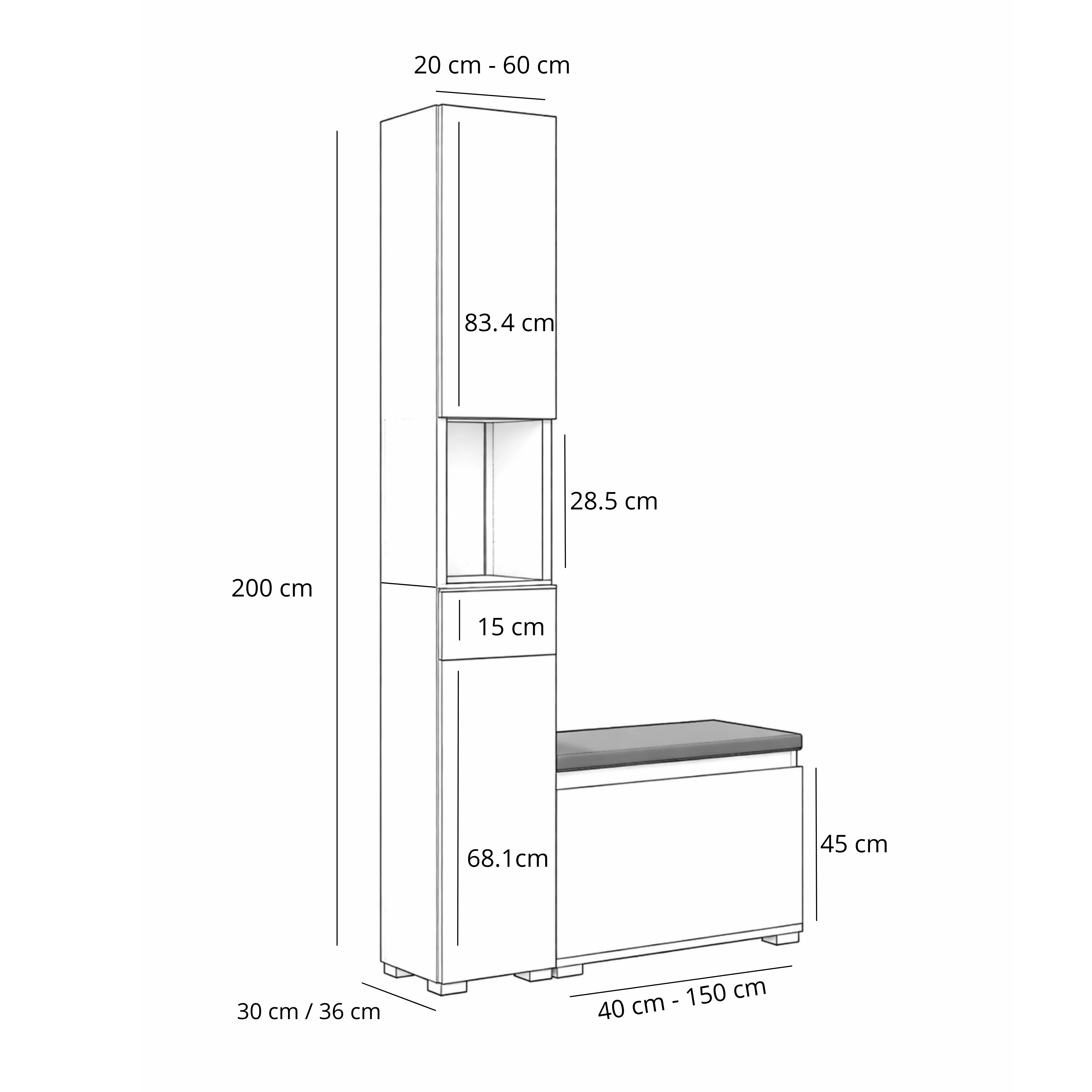 Nova + Sora2 to kompletne rozwiązanie dla przedpokoju na buty, które łączy funkcjonalność z nowoczesnym designem. Ta pojemna szafka do przedpokoju z siedziskiem zapewnia wygodę podczas przebierania, a jednocześnie oferuje praktyczne schowki dzięki integrowanej szufladzie i półkom. Dzięki możliwości montażu obustronnego słupka do przedpokoju, możesz dostosować zestaw do swoich potrzeb i preferencji aranżacyjnych. Inwestycja w ten mebel to gwarancja porządku, stylu i funkcjonalności w Twoim przedpokoju na lata.