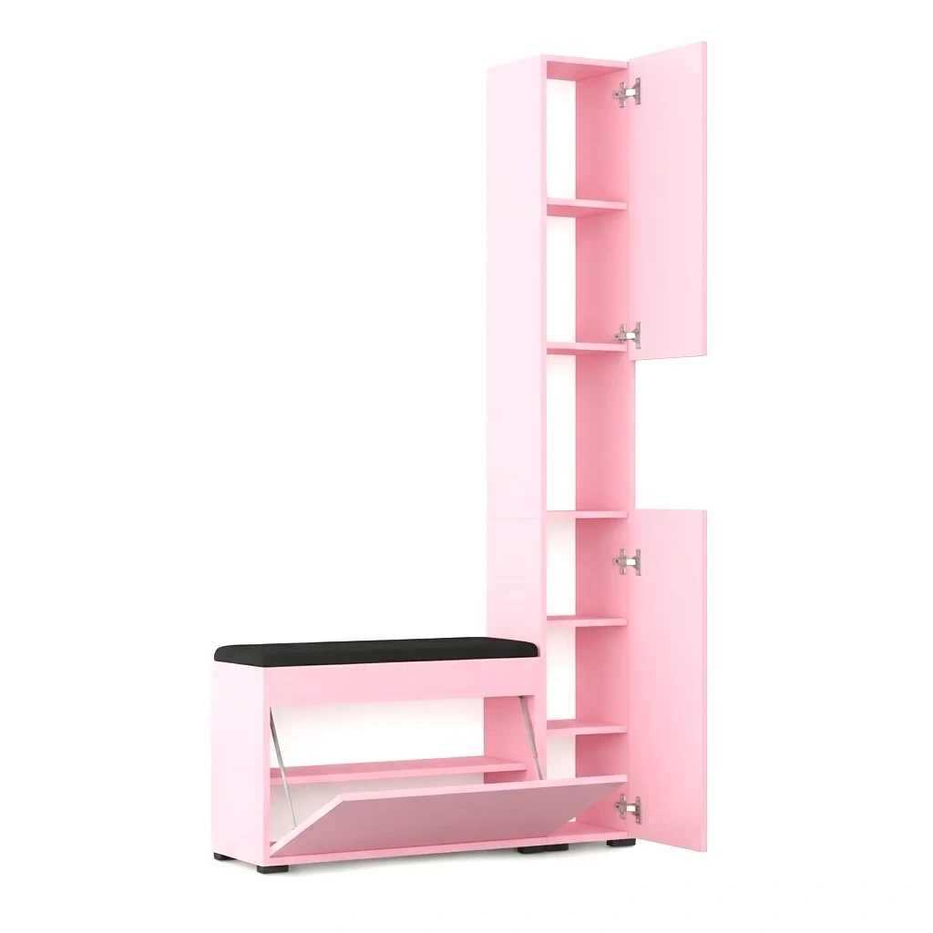 Szafka Do Przedpokoju Na Buty Pojemna z Siedziskiem Słupek Z Półkami Różowy Nova Sora