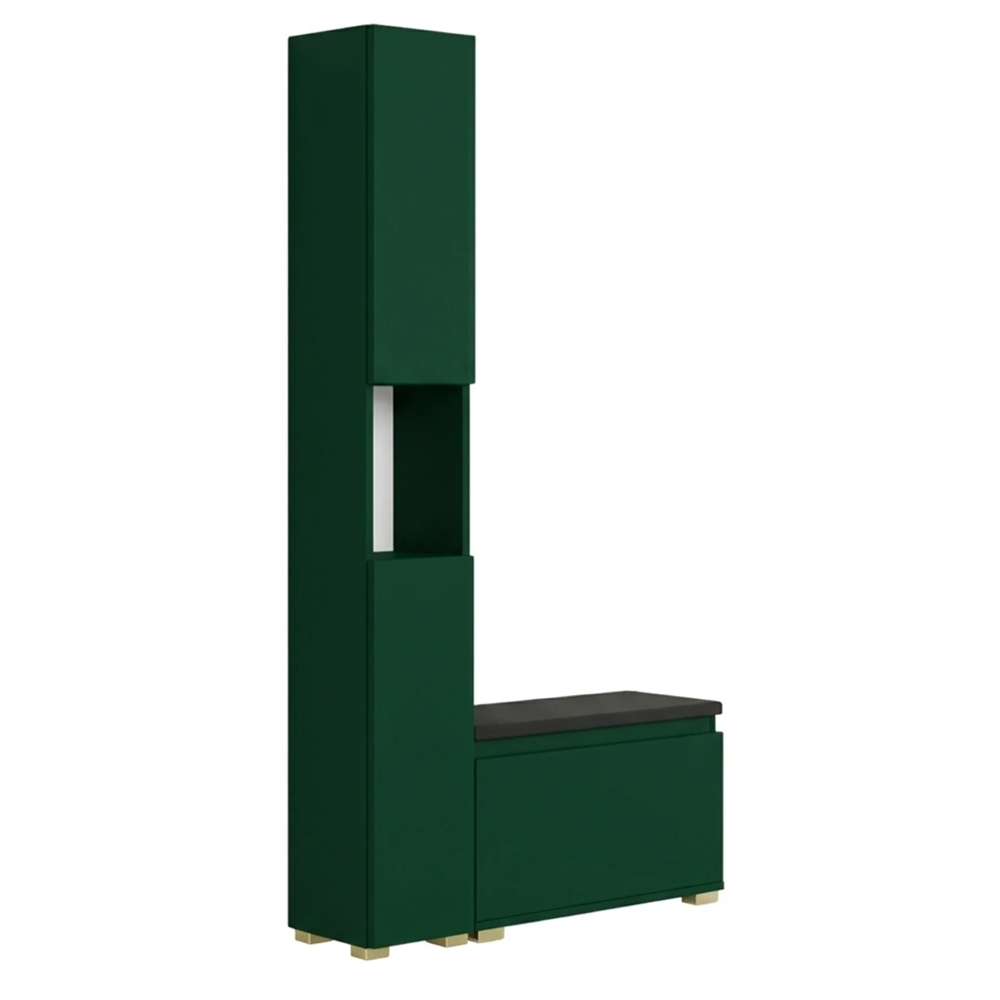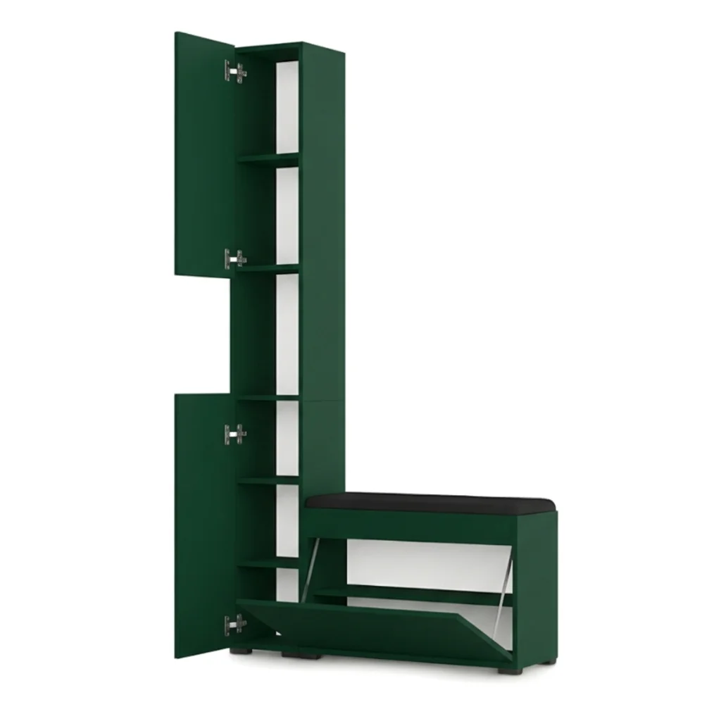 Szafka Do Przedpokoju Na Buty Pojemna z Siedziskiem Słupek Z Półkami Zielony Nova Sora