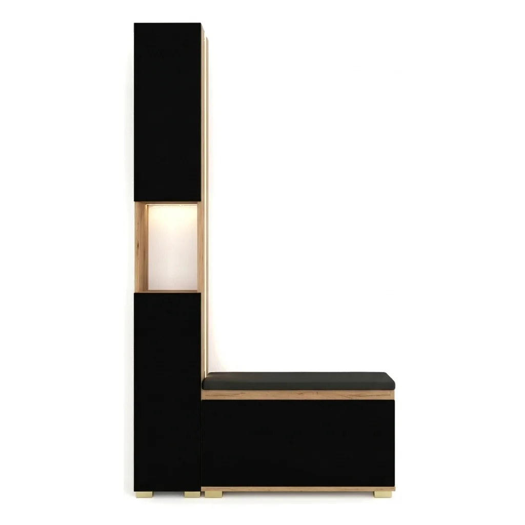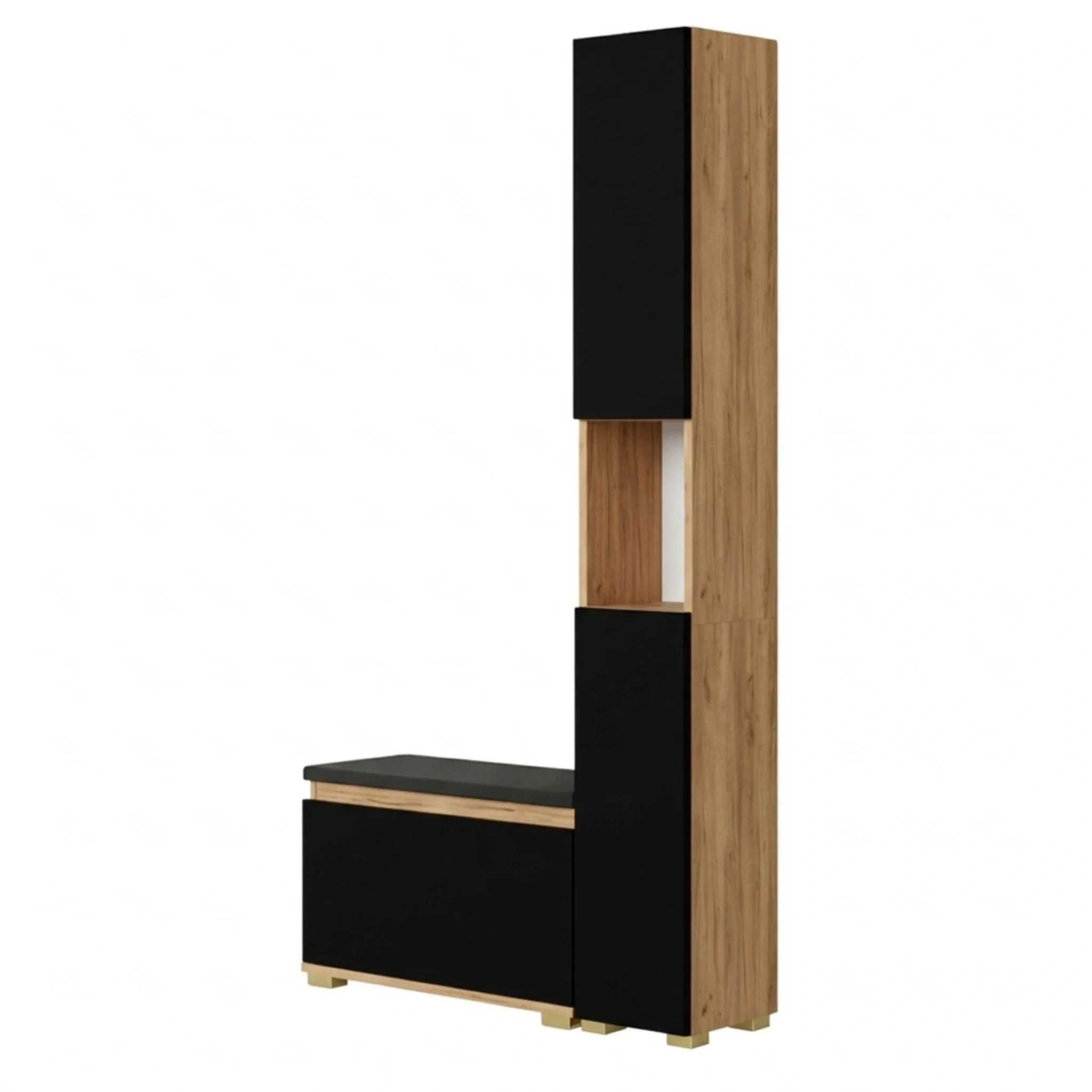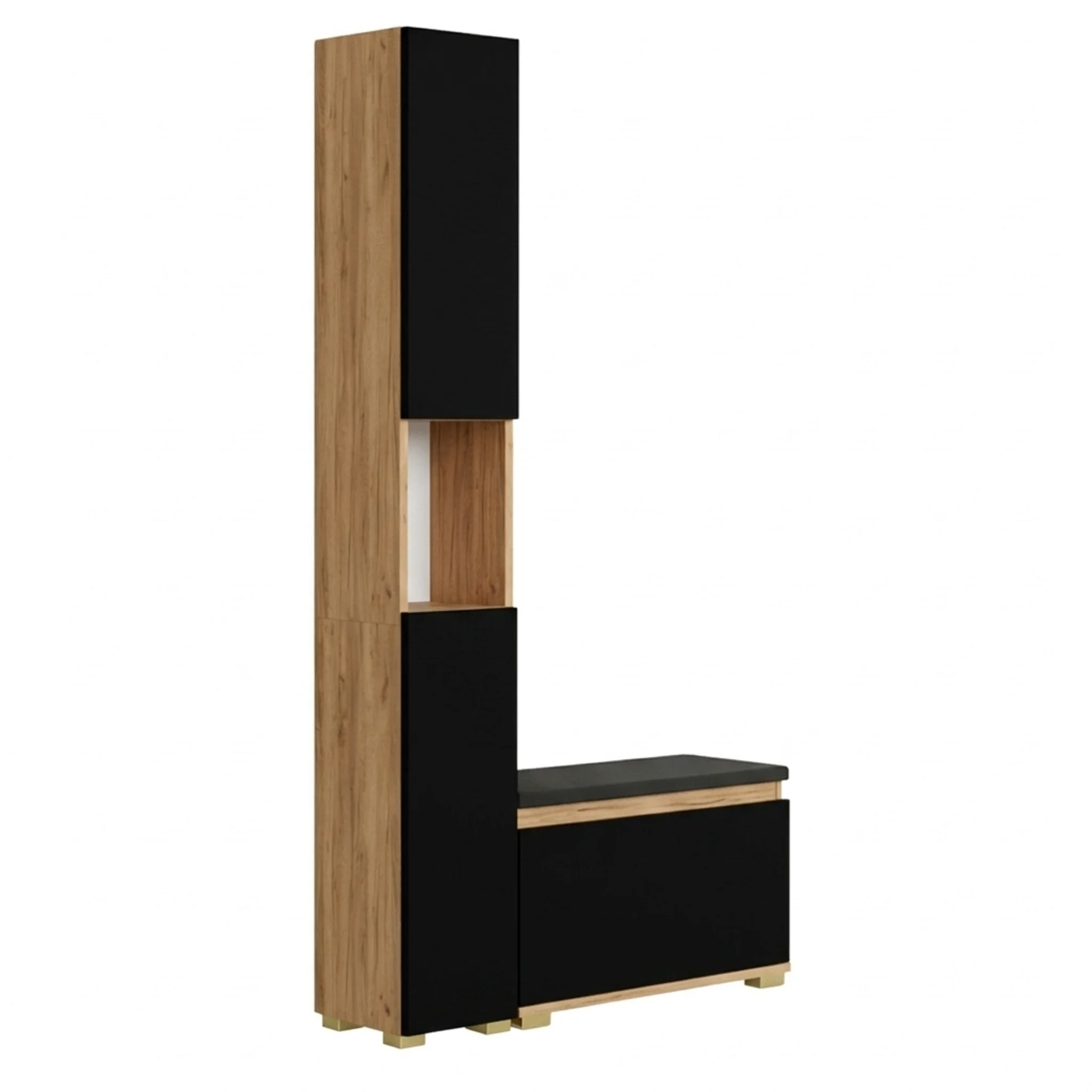 Szafka Do Przedpokoju Na Buty Pojemna z Siedziskiem Słupek Z Półkami Złoty Craft + Czarny Front Nova Sora