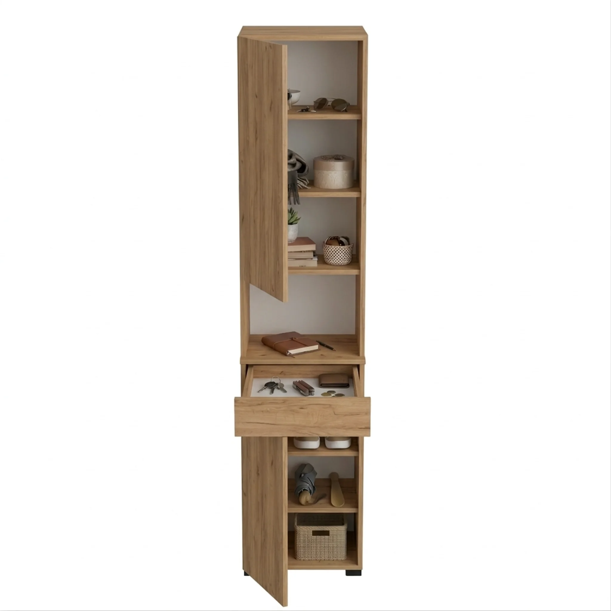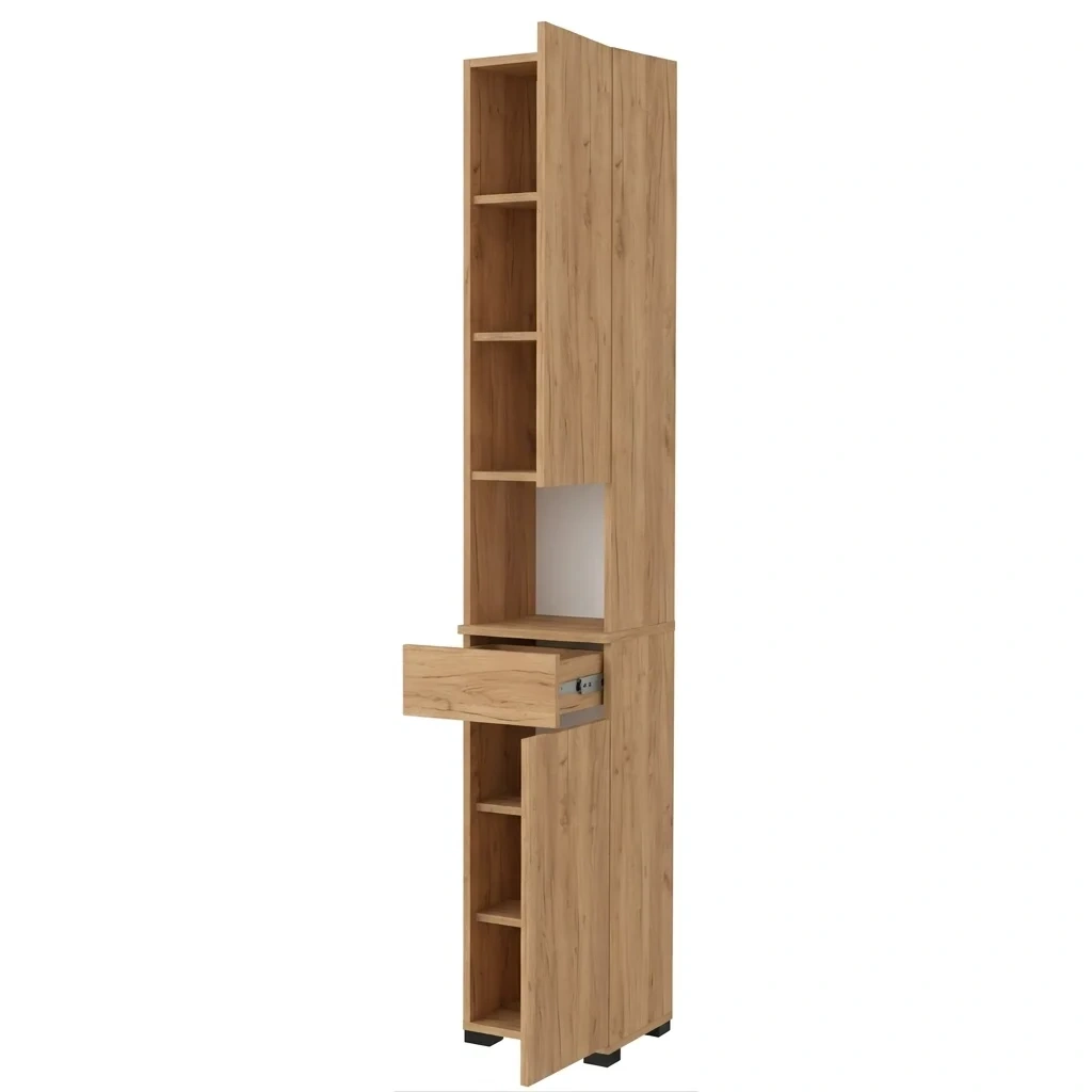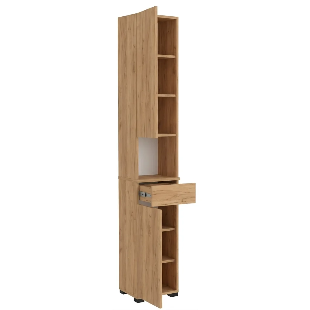 Słupek wąski Sora 2 to kompaktowe i funkcjonalne rozwiązanie dla każdego przedpokoju. Połączenie praktycznej szuflady, pojemnych półek i obustronnej konstrukcji sprawia, że mebel idealnie wpisuje się w nowoczesne wnętrza. Dzięki zabudowanej organizacji będziesz mieć wszystko na swoim miejscu, a szafka na buty w kolorze Złoty Craft dodać będzie elegancji Twojemu domowi.