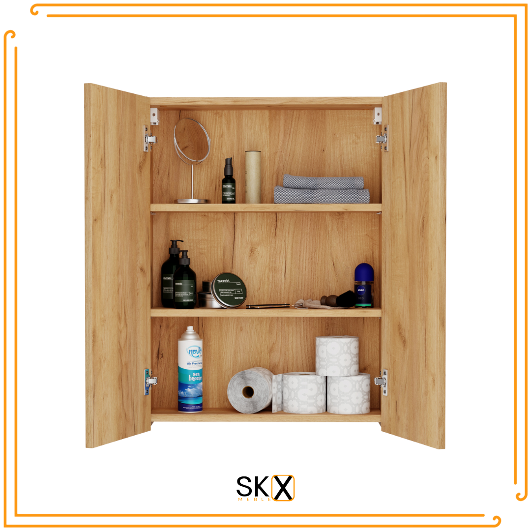 Szafka nad geberit to sprytne wykorzystanie przestrzeni, które łączy funkcjonalność i nowoczesny design. Dzięki solidnej płycie laminowanej o grubości 1.8 cm zapewnia trwałość na lata. Szafka łazienkowa wisząca ułatwia organizację dzięki wbudowanym dwóm półkom, które umożliwiają przechowywanie różnorodnych przedmiotów łazienkowych. Wysokiej jakości zawiasy z cichym domykiem gwarantują komfort użytkowania.