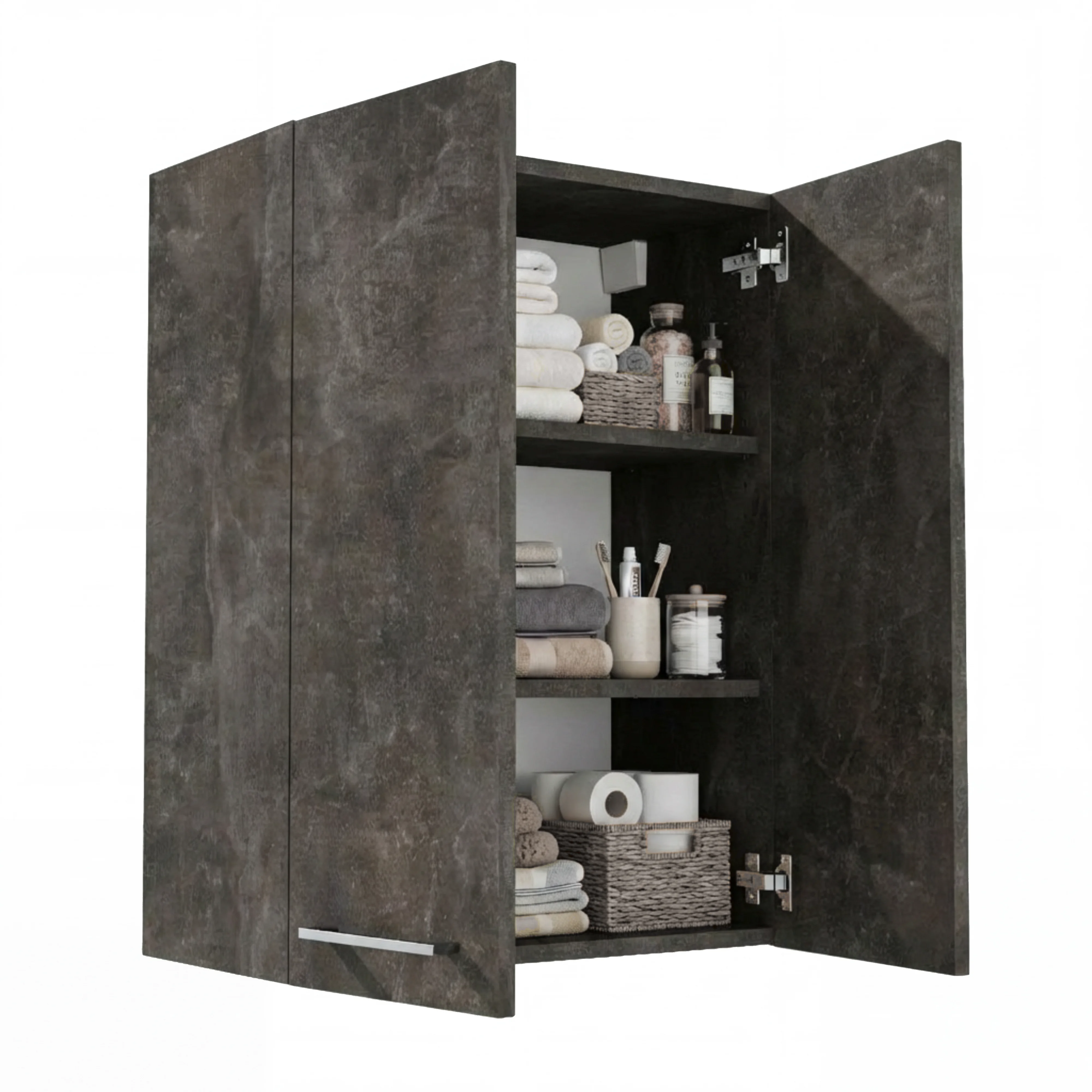 ✅ Praktyczne półki – Wnętrze szafki wyposażone jest w regulowane półki, które można przesuwać co 6,4 cm, umożliwiając łatwe dopasowanie przestrzeni do przedmiotów o różnych rozmiarach. Ta elastyczność pozwala organizować przechowywanie kosmetyków, akcesoriów i leków dokładnie tak, jak potrzebujesz.