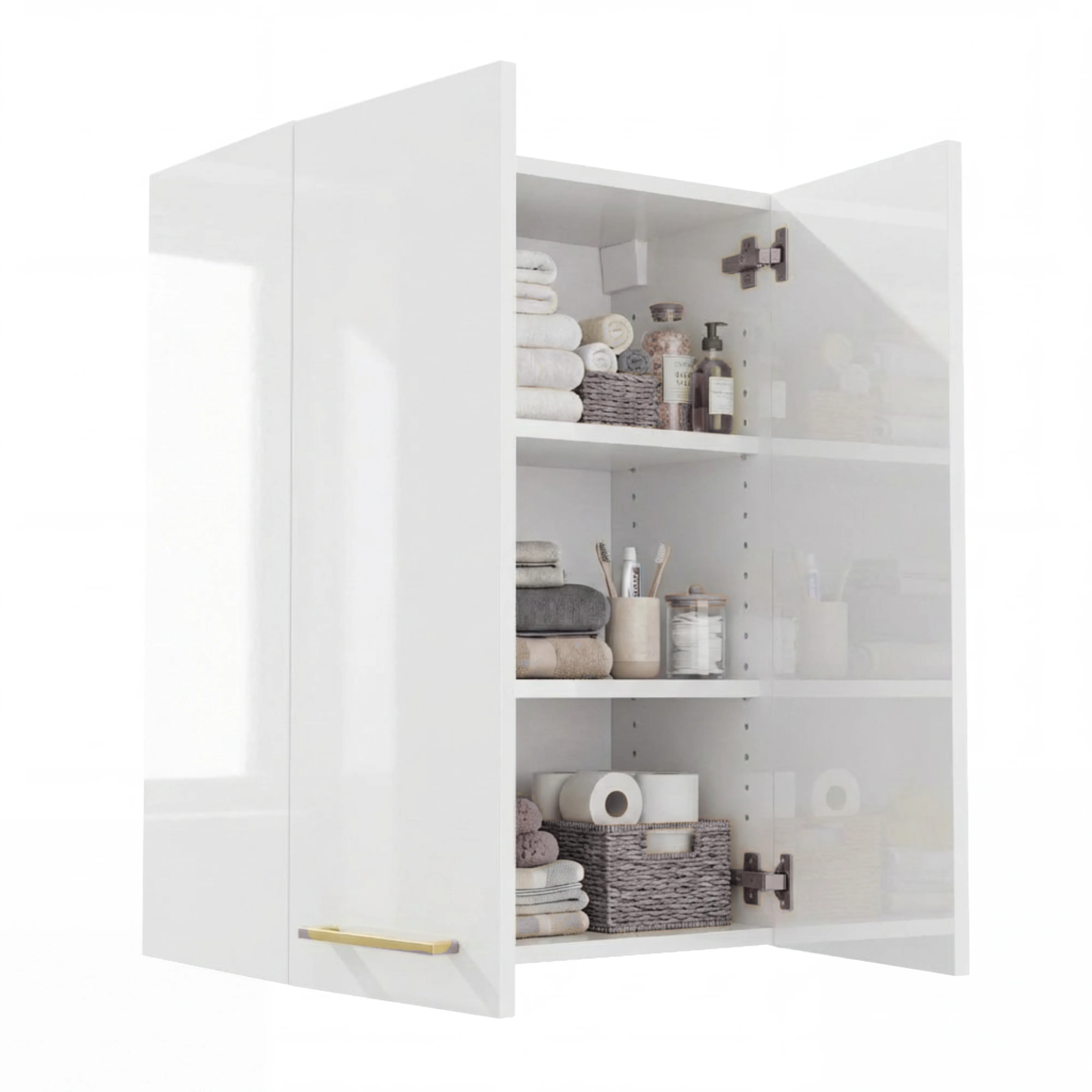 ✅ Praktyczne półki – Wnętrze szafki wyposażone jest w regulowane półki, które można przesuwać co 6,4 cm, umożliwiając łatwe dopasowanie przestrzeni do przedmiotów o różnych rozmiarach. Ta elastyczność pozwala organizować przechowywanie kosmetyków, akcesoriów i leków dokładnie tak, jak potrzebujesz.