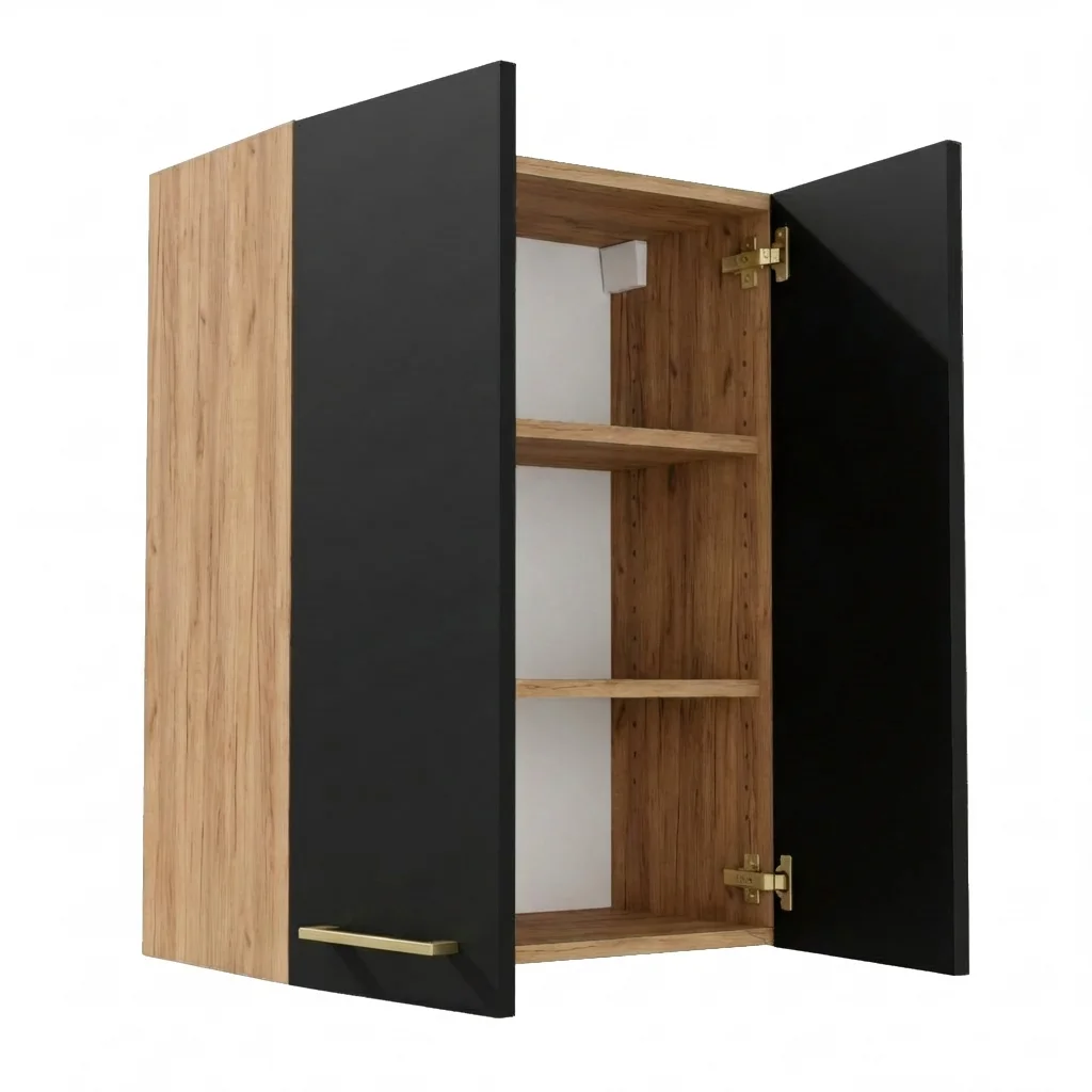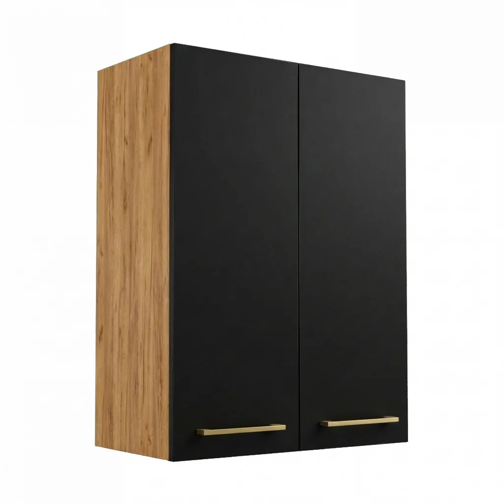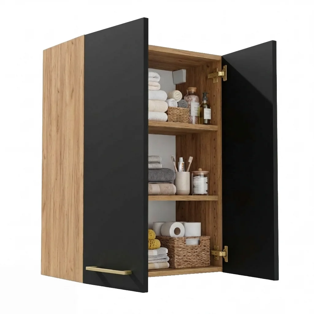 Szafka Łazienkowa Wisząca Pionowa Złoty Craft + Czarne Fronty Lisa