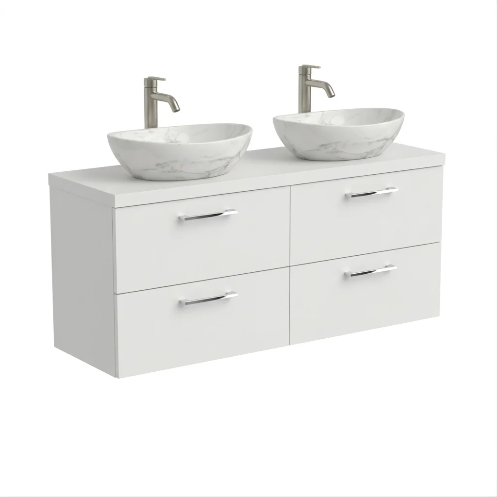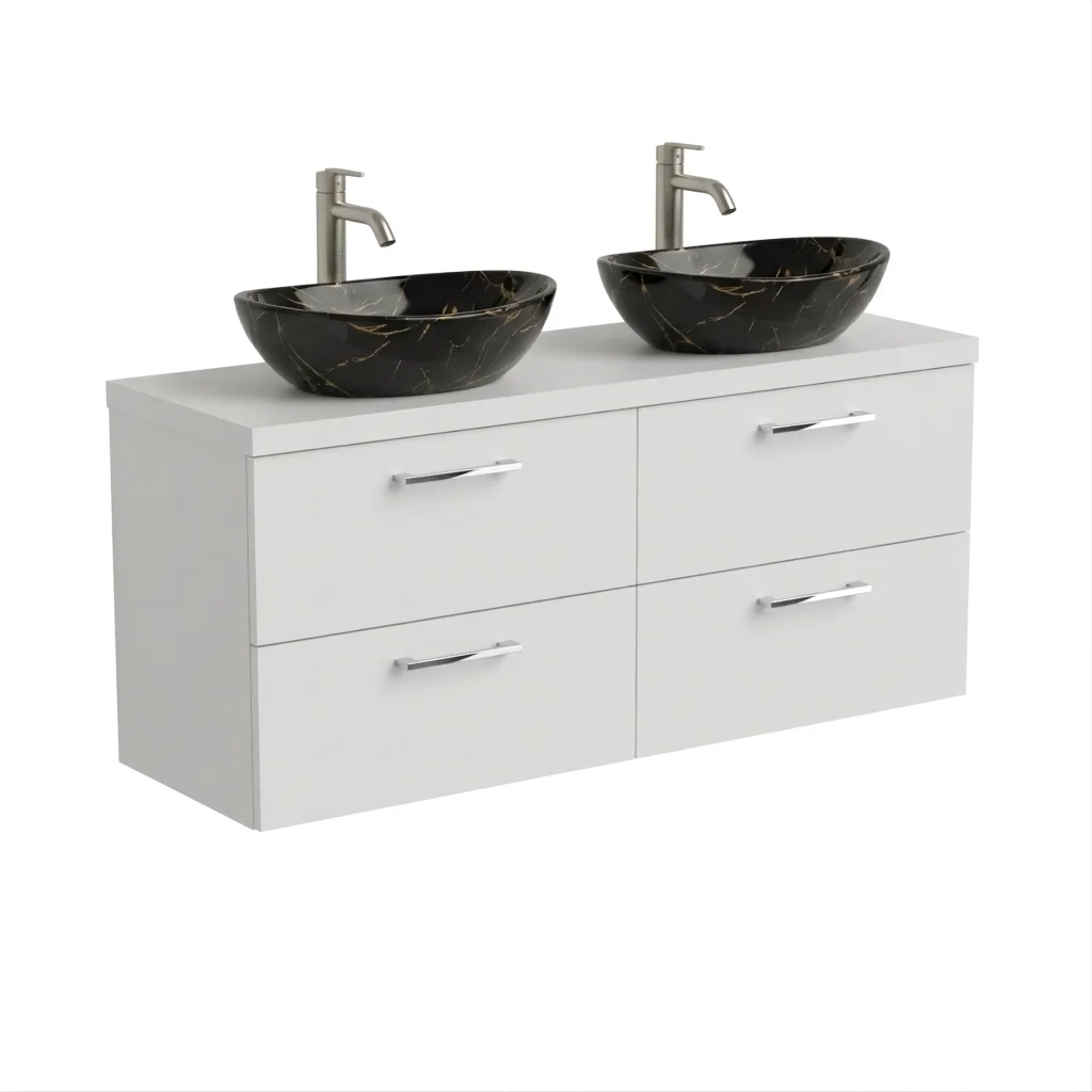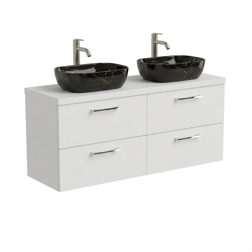 Szafka Łazienkowa Wisząca Pod Umywalkę Z Szufladami Podwójna Z Blatem Nadblatowa Biała Paula