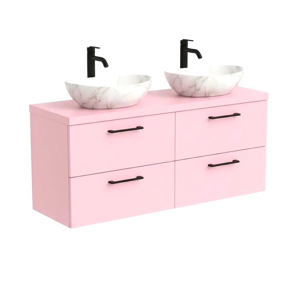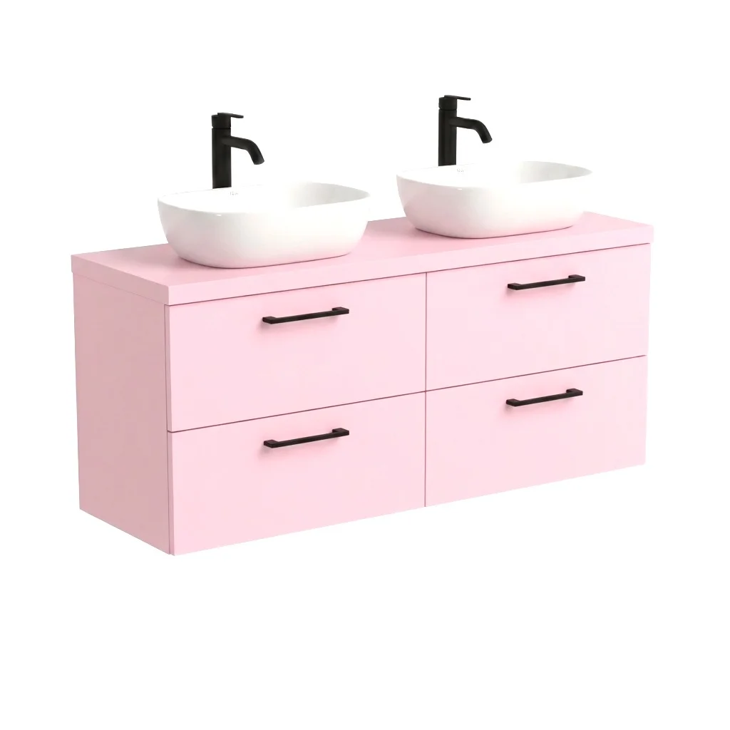 Szafka Łazienkowa Wisząca Pod Umywalkę Z Szufladami Podwójna Z Blatem Nadblatowa Rożowa Paula