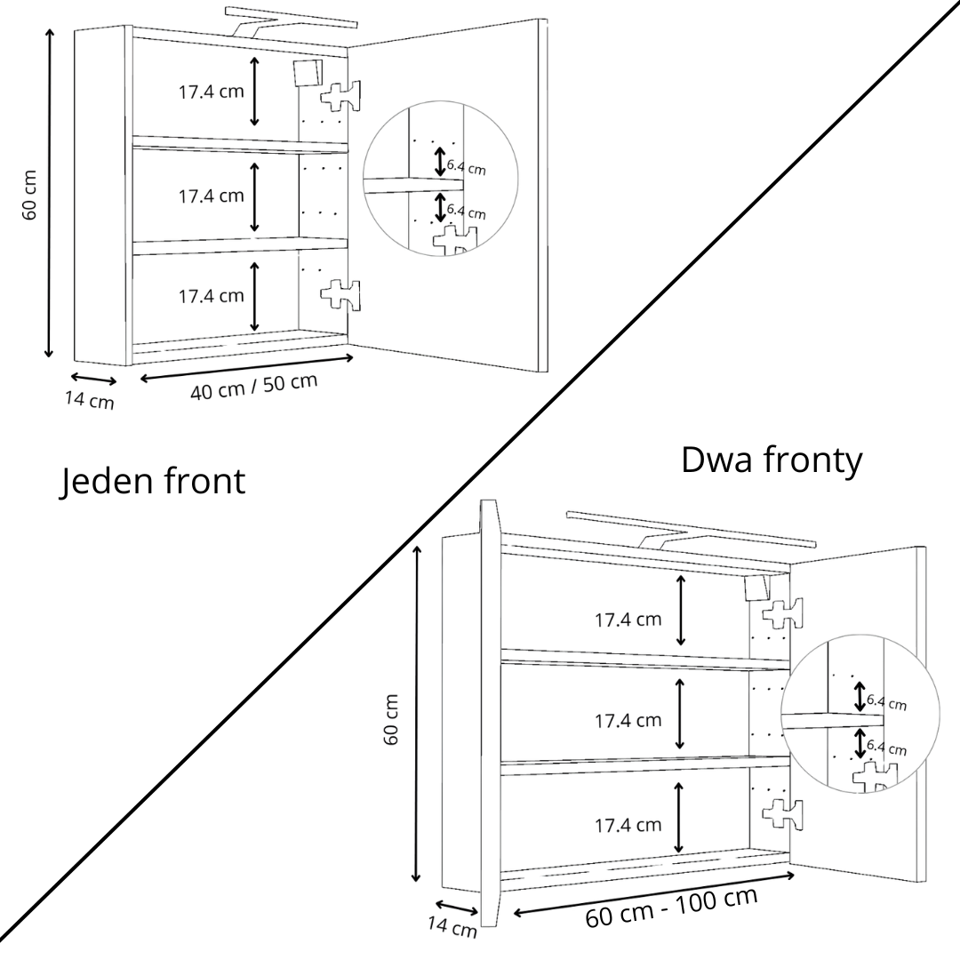 ✅ Obustronny montaż frontów – Front szafki łazienkowej można zainstalować zarówno z lewej, jak i z prawej strony, dostosowując się do indywidualnego układu łazienki. Ta elastyczność montażu sprawia, że szafka wisząca Elza pasuje do każdego wnętrza i preferencji użytkownika.