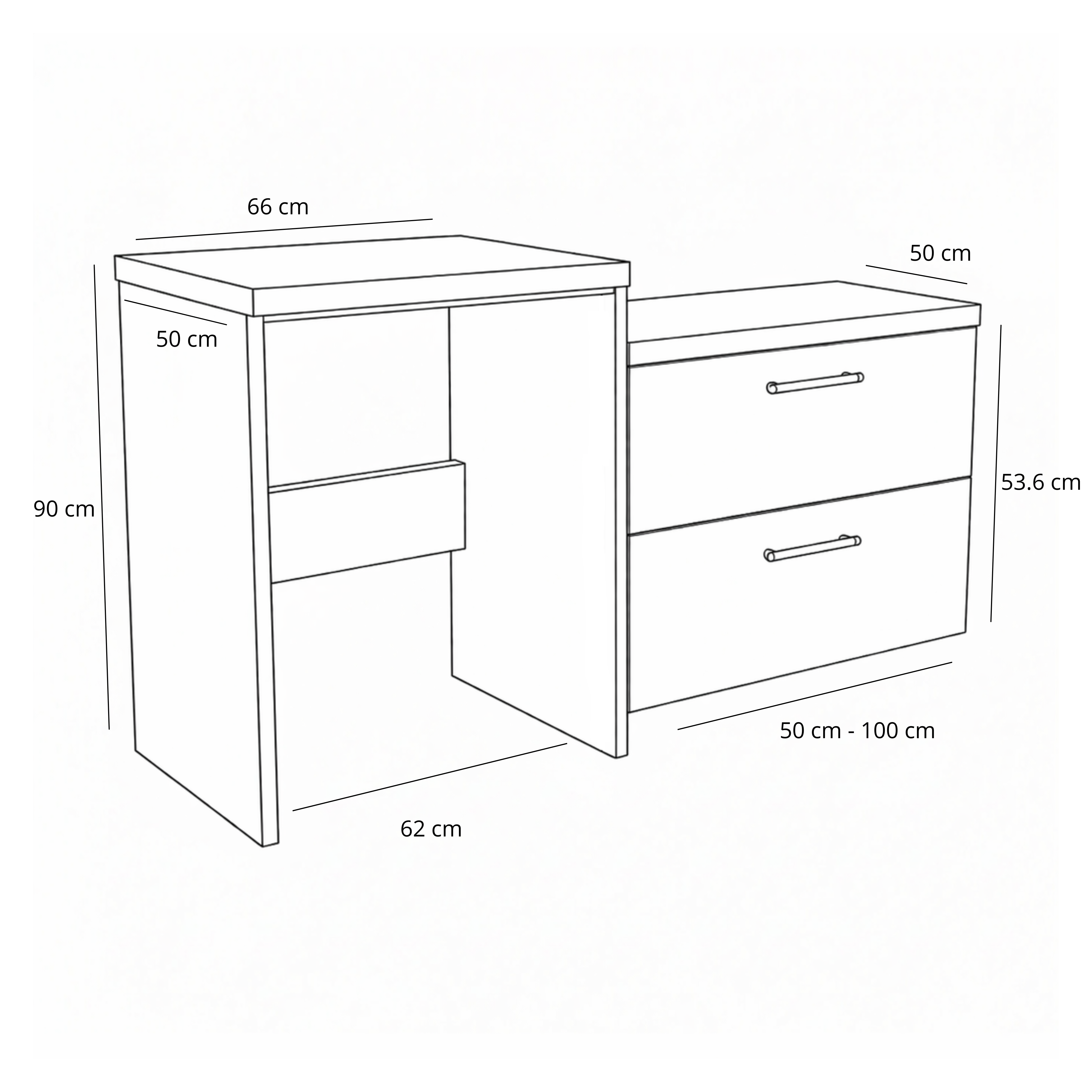 - Głębokość obu szafek: 50 cm