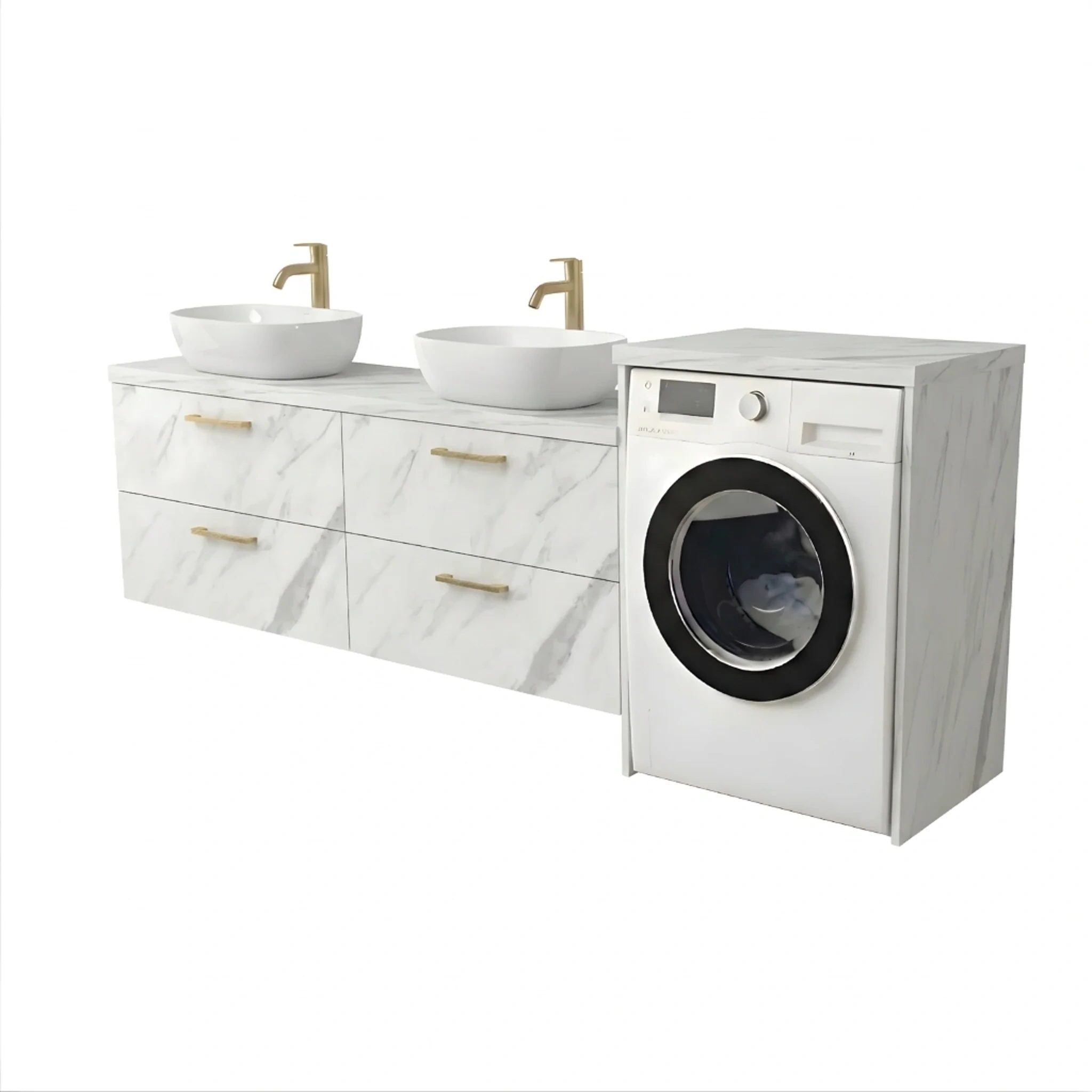 Szafka łazienkowa na pralkę i umywalkę wisząca nadblatowa z blatem szuflady Biały Marmur Lucy Paula Podwójna